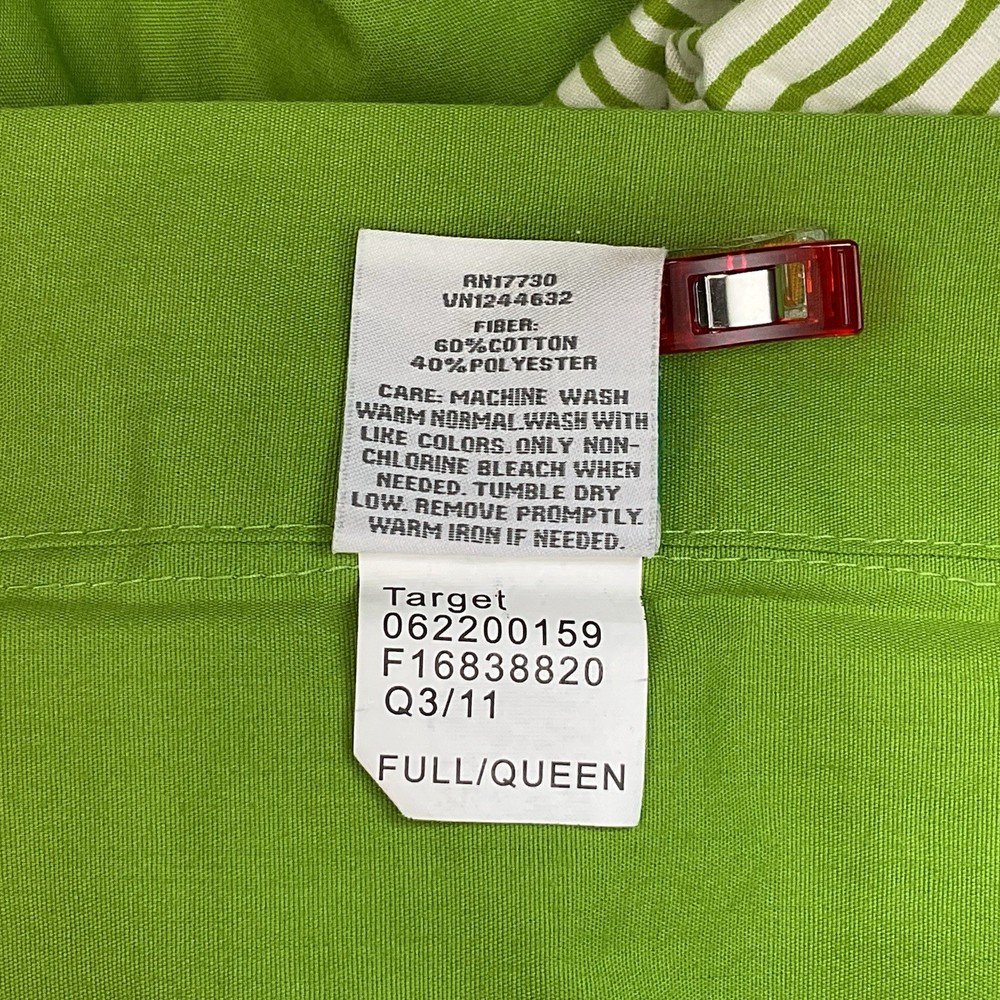 Room Essentials RE Target full/queen size duvet cover and 2 matching shams in a green geometric pattern. In excellent preowned condition.