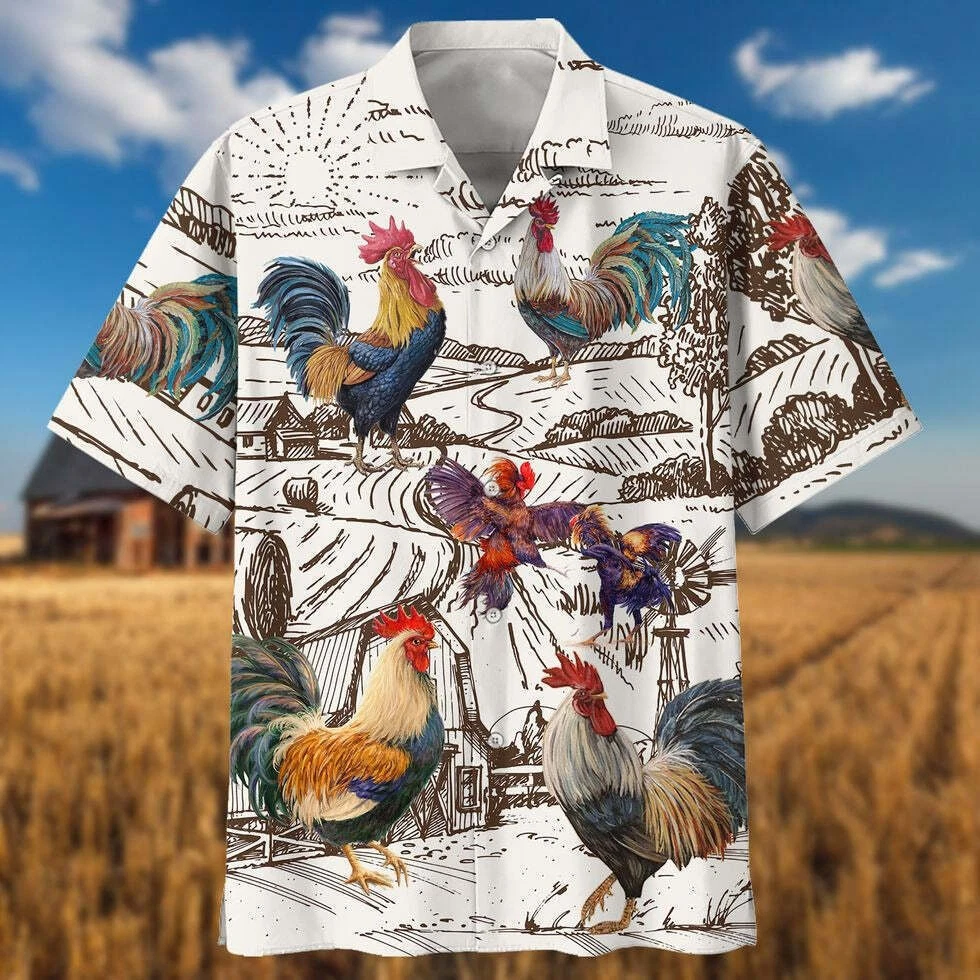 Rooster Farm 3D Hawaiian Shirt Chicken Hawaiian Aloha Beach Shirts Rooster Gift
