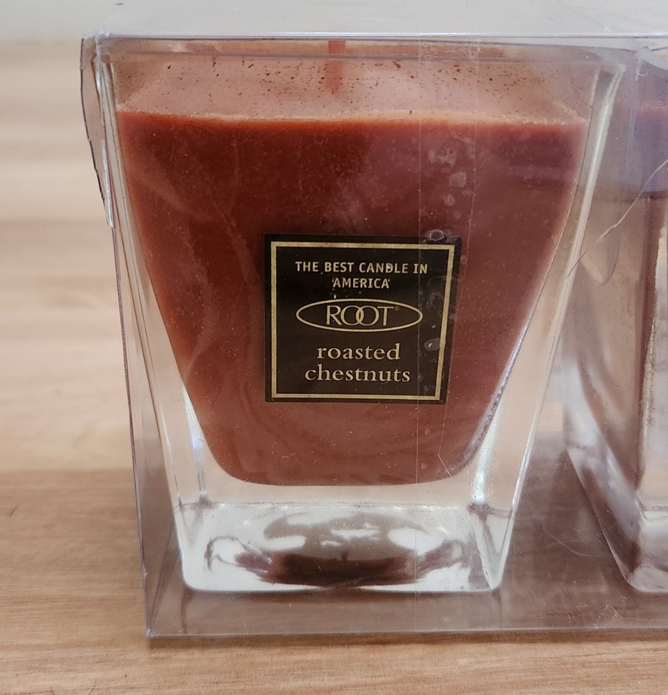 Features: Decorative, Scented, Single Wick Material: Glass Color: Brown Brand: Root Scent: roasted chestnut Shape: Square Number in Pack: 2 Type: Set