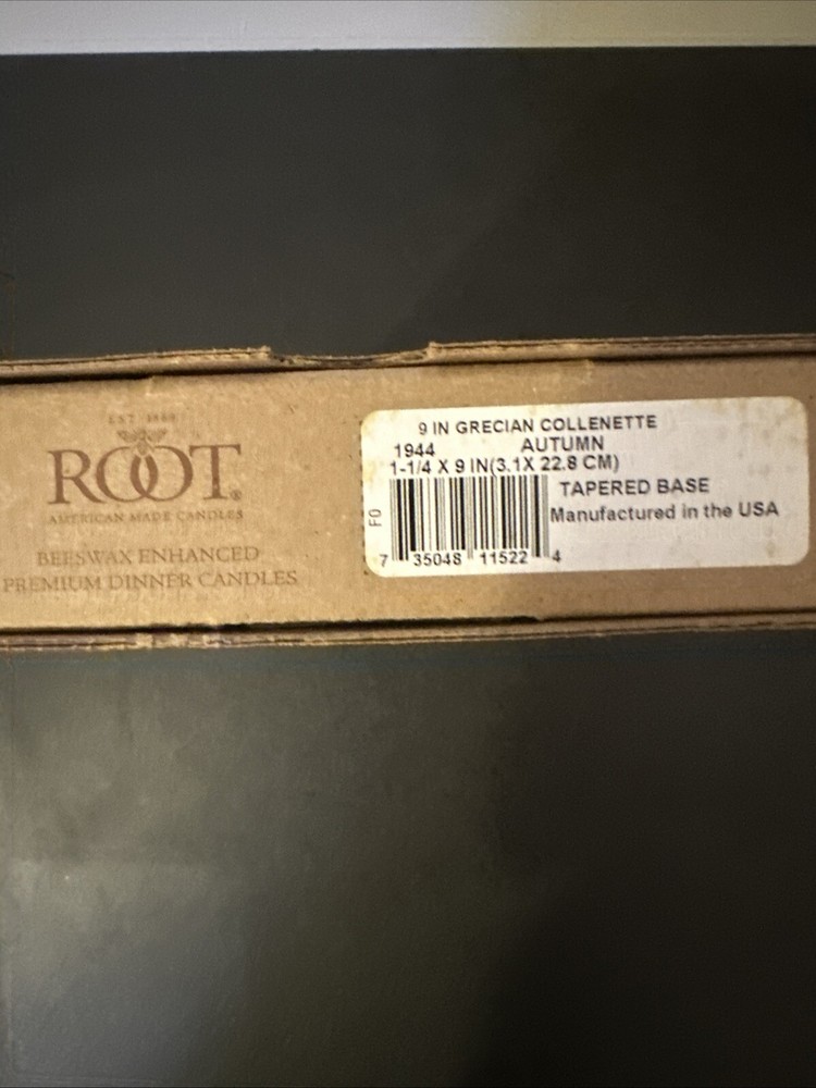 Root Grecian Collenette 9" Autumn Candles Box of 4 Vintage 1944