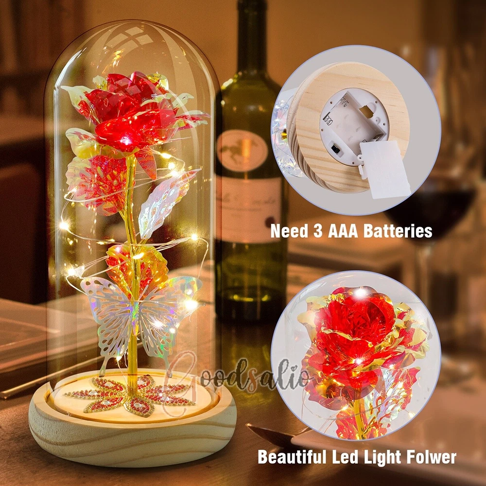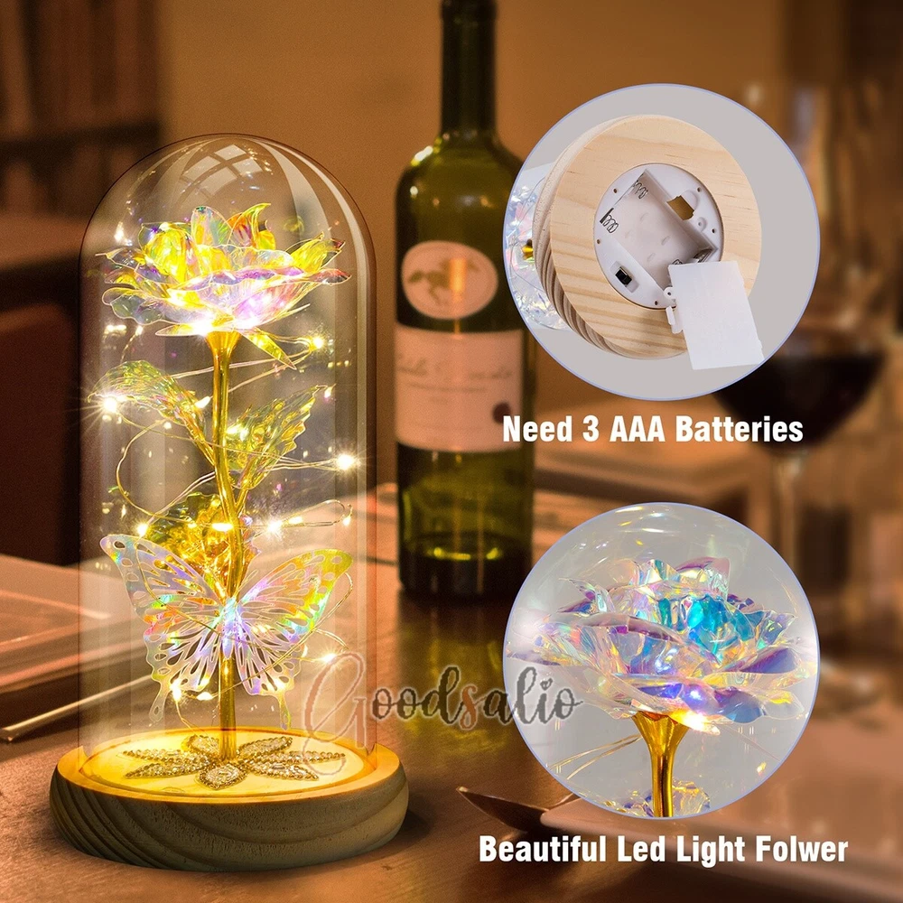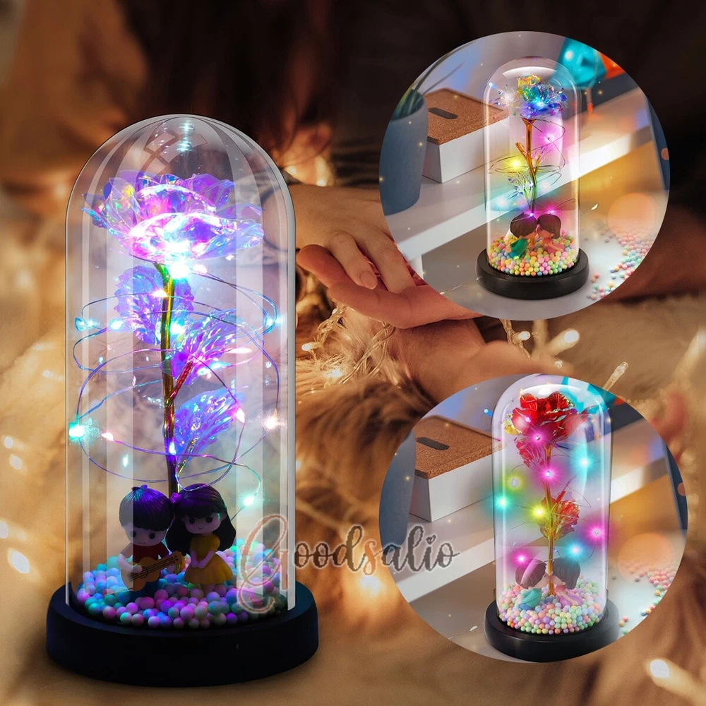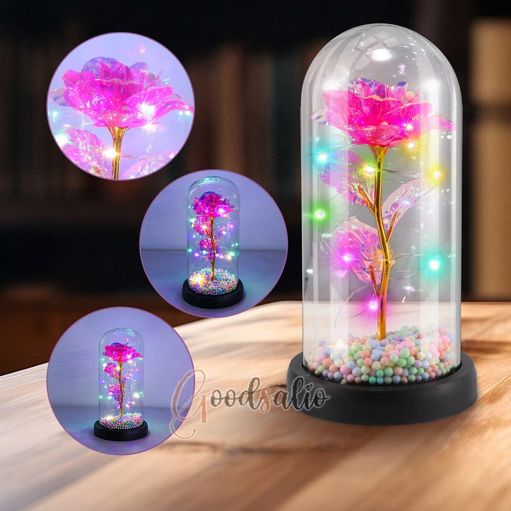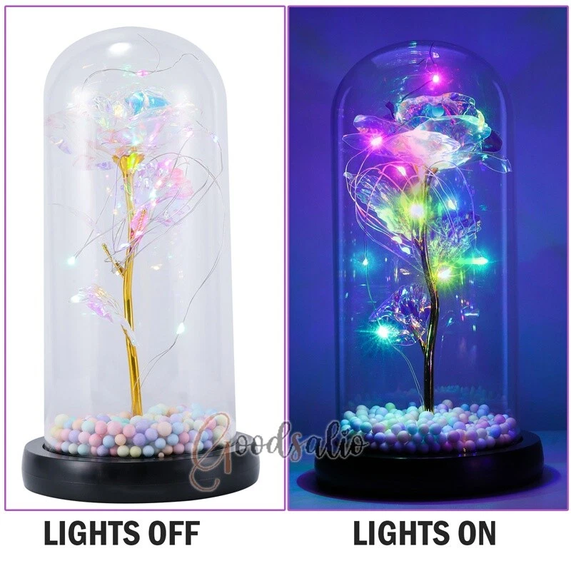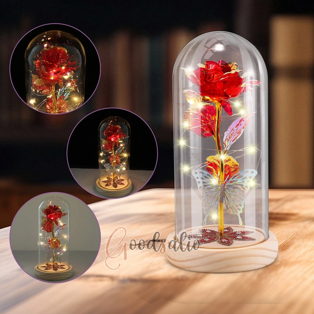 Rosa Roja En El Domo De Cristal luz LED con cubierta de vidrio Valentine's Day ★SPECIAL TIPS: √ Ship within 24 hours Via USPS from NJ ,USA √ 100% New & Excellent Quality √ Professional Customer Service √ Strictly QC, Each set was fully tested before shipping √ Offer delivery with Tracking Number If not 100% satisfied with our products, no-questions asked, we offer 30-day free return & money back. TypeA: Feature: -- Rose Flower: This colorful foil gold rose flower is made of high-quality plastic with a stable and smooth surface, the roses and petals displayed look very real, and it is also covered with a transparent dome that protects the rose flower and makes it timeless. -- LED Rose: The rose is wrapped around the colorful LED light strip, powered by 3 AAA batteries (not included). When turned on at night, it will light up with colorful constant lights, creating a romantic atmosphere for your home and bedroom at night. -- Romantic Symbol: The built-in kissing toy for little boys and girls is very cute. The rose will bring you infinite love and beauty. It not only symbolizes eternal love, but also a symbol of good wishes. -- Wide Application: Not only can be used as a decoration in the living room or bedroom, but also as a gift for relatives or lovers, very suitable for home decoration, holiday gifts, etc. Specification: Flower color: colorful/Red Light color: multicolor Material: plastic Lighting mode: always on LED lights: 20 pcs Battery type: 1.5V*AAA battery (not included) Usage: Suitable for home decoration, holiday gifts, etc. Product size: 21.5 (height)*11 (bottom diameter)*9 (thickness) cm/8.46*4.3*3.5inch Package includes: 1*Rose Flower Night Light 1*Packing Box Feature: -- Rose Flower: Made of high-quality plastic, which makes the rose and petals look very real, and also covered with a transparent dome, which can protect the rose flower and enjoy the beauty of the rose in 360°. -- Romantic Symbol: This is a beautiful LED light rose, which means enthusiasm and romance, not only eternal love, but also a symbol of good wishes. -- LED Roses: Roses wrapped around the LED light strip, powered by batteries, can be used for home decoration or create a romantic atmosphere during the day and night. -- Wide Application: Not only can be used as a living room or bedroom decoration, but also can be used as a gift for relatives or friends, very suitable for home decoration, holiday gifts, etc. Specification: Flower color: Red/Pink/Blue/Purple Light color: warm white Material: plastic Lighting mode: always on LED lights: 15pcs Uses: suitable for home decoration, holiday gifts, etc. Battery Type: 1.5V*AAA battery (not included) Product size: 20.5 (height) *11 (bottom diameter) *9cm/8.07*4.3*3.5inch Package includes: 1*Rose Flower Lamp 1*Packing Box Features: *Unique new design - Beauty and The Beast Rose Kit, was inspired by the movie "Beauty and the Beast" - a beautiful true love story. The tiny LED string lights are embedded in the petals, the warm white light illuminates the entire dome. *Durable,Safety and Heat-resistant Dome-Safety and light Dome cover allows LED light to shine more brilliantly in our high borosilicate heat-resistant glass than other covers, resists yellowing & discoloration. *Warm colored LED strings- LED string is made with a fine bendable copper wire that create any shape you want. *Charming decor for Indoor house,living room,bedroom,hotel,bars,to create romantic atmosphere. *Rose is the symbol of LOVE & BEAUTY,ROMANCE & PASSION,BEST WISHES,so it is the Ideal Gift for Valentine's Day, Mothers Day,Anniversary,Wedding, Engagement, Birthday. *Turn on the switch under the base,you will see the eternal beautiful flowers especially at night. *Lighting mode-Steady on Specifications: Materials: Glass Dome+ LED Lights + Silk Rose Rose Color:Red LED quantity:20LED Lighting color:Warm white Power source:3*AAA Batteries(not included) Dome diameter:9cm Base diameter:11cm thickness:2cm Overal height:22cm LED string lights length:100cm LEDs interval:5cm Package includes: Rose LED Lights*1(3*AAA Batteries not included) Features: 1.100% brand new and high quality! 2. Valentine's Day, Mother's Day, the best gift for Christmas. 3. Rose has always been a symbol of beauty, love and appreciation. 4. 99% gold foil leaves, peduncle with polyethylene 24K gold plating. 5. Gift package, well and safe. 6. A perfect gift for your spouse wife girlfriend to show your sincere love. A best gift for your mom to say" Thank you" and "You're loved always." Great gifts for anniversary, birthday, Christmas, Valentine's Day, Mother's Day, wedding. Specification: Weight:8.94g Note: Due to different lighting and shooting conditions, the color of the image may differ from the actual product. Please refer to the actual product. Package include: 1*rose 1*box 1*love base Feature -- Decorative Gift: This rose flower lamp is a romantic gift for your girlfriend on Valentine's Day or birthday, and can also be used as a room or bedroom decoration. -- High-quality Materials: The base of the glass cover adopts a wood grain base, which is durable, not easy to damage, with complex texture, stable and smooth surface, and no burrs. -- Transparent Glass: The glass cover of the rose lamp is made of transparent glass, which allows you to enjoy the beauty of the roses at 360 degrees. It is delicate and romantic, and is also easy to display and store. -- Roses and Butterflies: Roses are designed with simulation. Roses and butterflies in the rose lamp bloom in the glass cover, never fade and representing eternal love. Specifications: Color: Colorful platinum/Blue/Red Material: Plastic + Glass Cover Light color: Warm Color Lighting mode: always on Battery: 3 AAA batteries (not included) Uses: decoration, birthday gifts, holiday gifts Product size: 22.5*11*9cm/8.86*4.33*3.54inch Package includes: 1*Rose Light 1*String Lights 1*Gift Box Feature: -- Rose Flower: This colorful foil gold rose flower is made of high-quality p