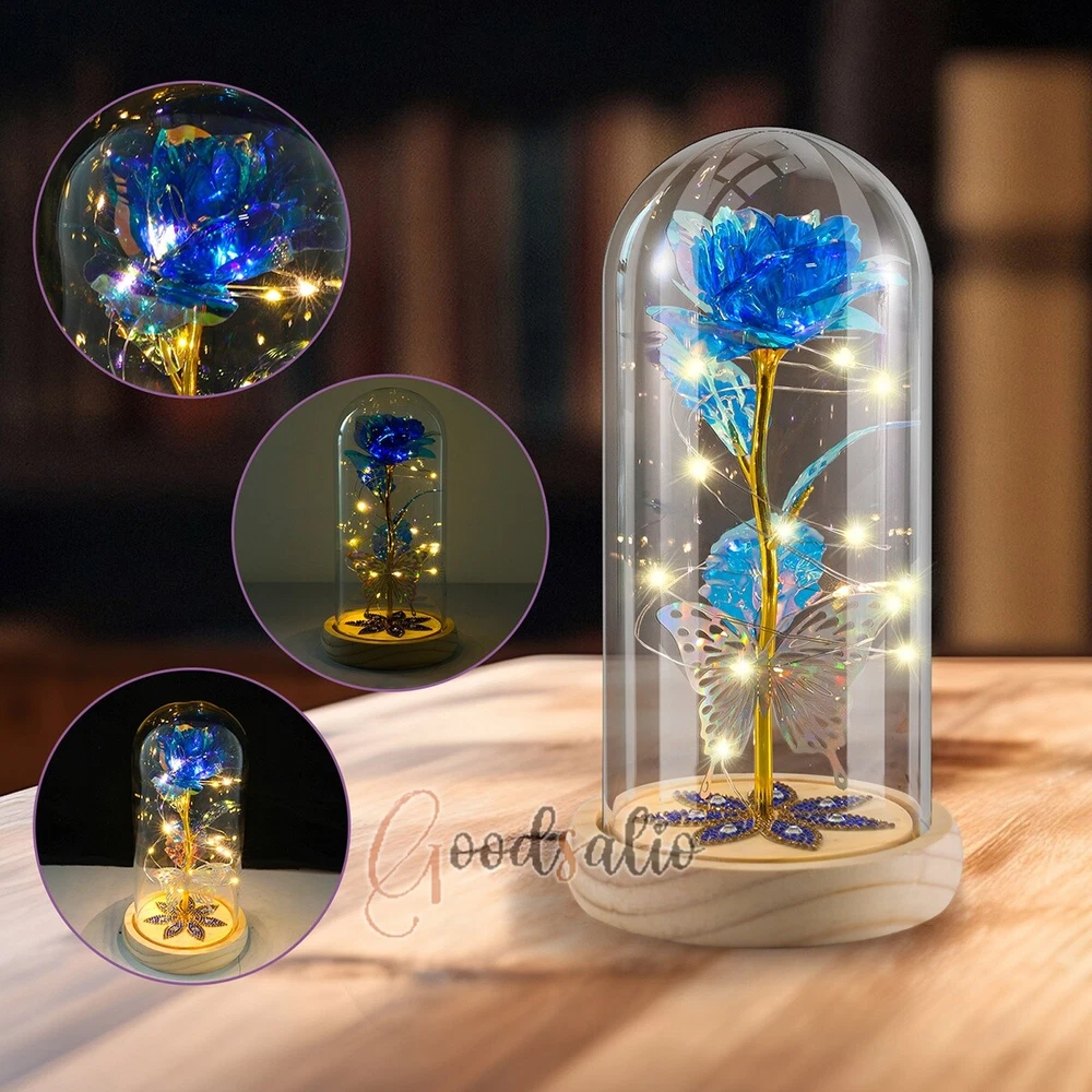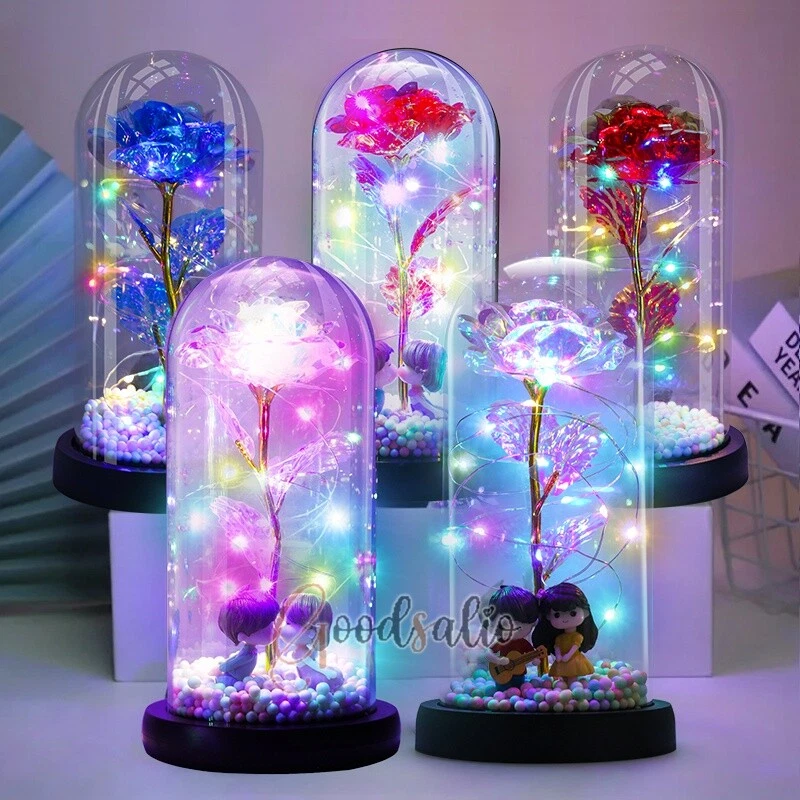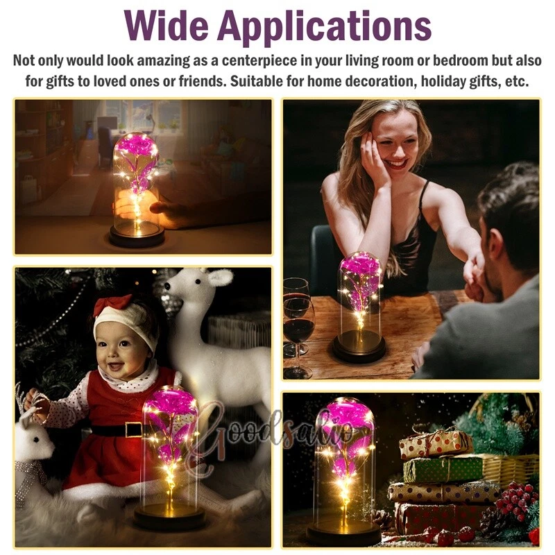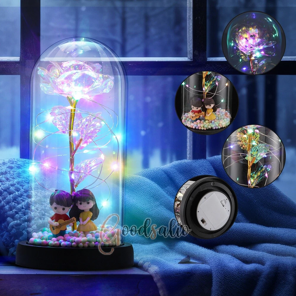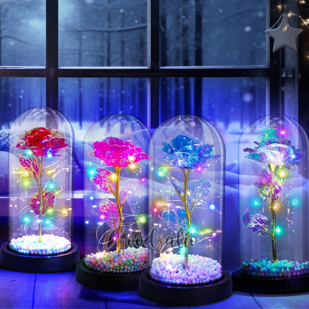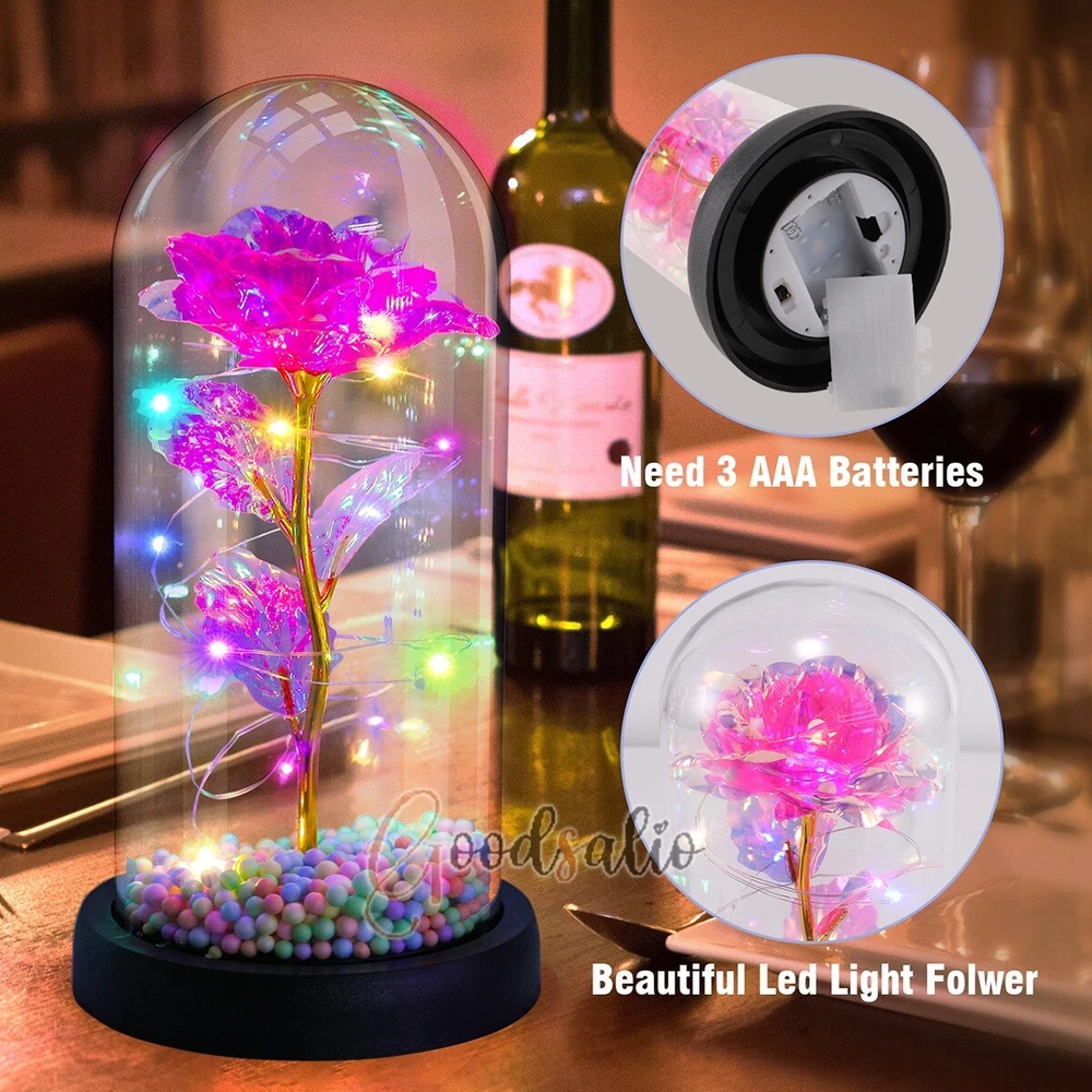 Rosa Roja En El Domo De Cristal luz LED con cubierta de vidrio Valentine's Day ★SPECIAL TIPS: √ Ship within 24 hours Via USPS from NJ ,USA √ 100% New & Excellent Quality √ Professional Customer Service √ Strictly QC, Each set was fully tested before shipping √ Offer delivery with Tracking Number If not 100% satisfied with our products, no-questions asked, we offer 30-day free return & money back. TypeA: Feature: -- Rose Flower: This colorful foil gold rose flower is made of high-quality plastic with a stable and smooth surface, the roses and petals displayed look very real, and it is also covered with a transparent dome that protects the rose flower and makes it timeless. -- LED Rose: The rose is wrapped around the colorful LED light strip, powered by 3 AAA batteries (not included). When turned on at night, it will light up with colorful constant lights, creating a romantic atmosphere for your home and bedroom at night. -- Romantic Symbol: The built-in kissing toy for little boys and girls is very cute. The rose will bring you infinite love and beauty. It not only symbolizes eternal love, but also a symbol of good wishes. -- Wide Application: Not only can be used as a decoration in the living room or bedroom, but also as a gift for relatives or lovers, very suitable for home decoration, holiday gifts, etc. Specification: Flower color: colorful/Red Light color: multicolor Material: plastic Lighting mode: always on LED lights: 20 pcs Battery type: 1.5V*AAA battery (not included) Usage: Suitable for home decoration, holiday gifts, etc. Product size: 21.5 (height)*11 (bottom diameter)*9 (thickness) cm/8.46*4.3*3.5inch Package includes: 1*Rose Flower Night Light 1*Packing Box Feature: -- Rose Flower: Made of high-quality plastic, which makes the rose and petals look very real, and also covered with a transparent dome, which can protect the rose flower and enjoy the beauty of the rose in 360°. -- Romantic Symbol: This is a beautiful LED light rose, which means enthusiasm and romance, not only eternal love, but also a symbol of good wishes. -- LED Roses: Roses wrapped around the LED light strip, powered by batteries, can be used for home decoration or create a romantic atmosphere during the day and night. -- Wide Application: Not only can be used as a living room or bedroom decoration, but also can be used as a gift for relatives or friends, very suitable for home decoration, holiday gifts, etc. Specification: Flower color: Red/Pink/Blue/Purple Light color: warm white Material: plastic Lighting mode: always on LED lights: 15pcs Uses: suitable for home decoration, holiday gifts, etc. Battery Type: 1.5V*AAA battery (not included) Product size: 20.5 (height) *11 (bottom diameter) *9cm/8.07*4.3*3.5inch Package includes: 1*Rose Flower Lamp 1*Packing Box Features: *Unique new design - Beauty and The Beast Rose Kit, was inspired by the movie "Beauty and the Beast" - a beautiful true love story. The tiny LED string lights are embedded in the petals, the warm white light illuminates the entire dome. *Durable,Safety and Heat-resistant Dome-Safety and light Dome cover allows LED light to shine more brilliantly in our high borosilicate heat-resistant glass than other covers, resists yellowing & discoloration. *Warm colored LED strings- LED string is made with a fine bendable copper wire that create any shape you want. *Charming decor for Indoor house,living room,bedroom,hotel,bars,to create romantic atmosphere. *Rose is the symbol of LOVE & BEAUTY,ROMANCE & PASSION,BEST WISHES,so it is the Ideal Gift for Valentine's Day, Mothers Day,Anniversary,Wedding, Engagement, Birthday. *Turn on the switch under the base,you will see the eternal beautiful flowers especially at night. *Lighting mode-Steady on Specifications: Materials: Glass Dome+ LED Lights + Silk Rose Rose Color:Red LED quantity:20LED Lighting color:Warm white Power source:3*AAA Batteries(not included) Dome diameter:9cm Base diameter:11cm thickness:2cm Overal height:22cm LED string lights length:100cm LEDs interval:5cm Package includes: Rose LED Lights*1(3*AAA Batteries not included) Features: 1.100% brand new and high quality! 2. Valentine's Day, Mother's Day, the best gift for Christmas. 3. Rose has always been a symbol of beauty, love and appreciation. 4. 99% gold foil leaves, peduncle with polyethylene 24K gold plating. 5. Gift package, well and safe. 6. A perfect gift for your spouse wife girlfriend to show your sincere love. A best gift for your mom to say" Thank you" and "You're loved always." Great gifts for anniversary, birthday, Christmas, Valentine's Day, Mother's Day, wedding. Specification: Weight:8.94g Note: Due to different lighting and shooting conditions, the color of the image may differ from the actual product. Please refer to the actual product. Package include: 1*rose 1*box 1*love base Feature -- Decorative Gift: This rose flower lamp is a romantic gift for your girlfriend on Valentine's Day or birthday, and can also be used as a room or bedroom decoration. -- High-quality Materials: The base of the glass cover adopts a wood grain base, which is durable, not easy to damage, with complex texture, stable and smooth surface, and no burrs. -- Transparent Glass: The glass cover of the rose lamp is made of transparent glass, which allows you to enjoy the beauty of the roses at 360 degrees. It is delicate and romantic, and is also easy to display and store. -- Roses and Butterflies: Roses are designed with simulation. Roses and butterflies in the rose lamp bloom in the glass cover, never fade and representing eternal love. Specifications: Color: Colorful platinum/Blue/Red Material: Plastic + Glass Cover Light color: Warm Color Lighting mode: always on Battery: 3 AAA batteries (not included) Uses: decoration, birthday gifts, holiday gifts Product size: 22.5*11*9cm/8.86*4.33*3.54inch Package includes: 1*Rose Light 1*String Lights 1*Gift Box Feature: -- Rose Flower: This colorful foil gold rose flower is made of high-quality p