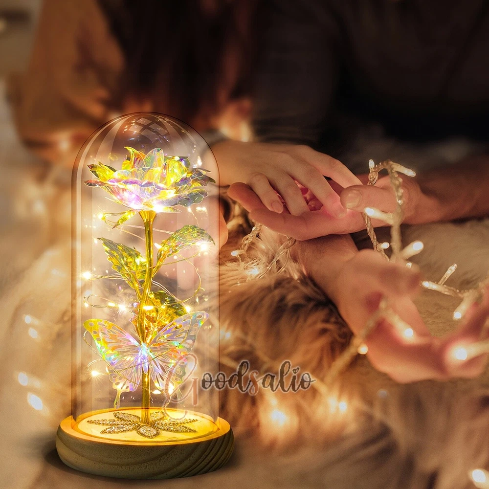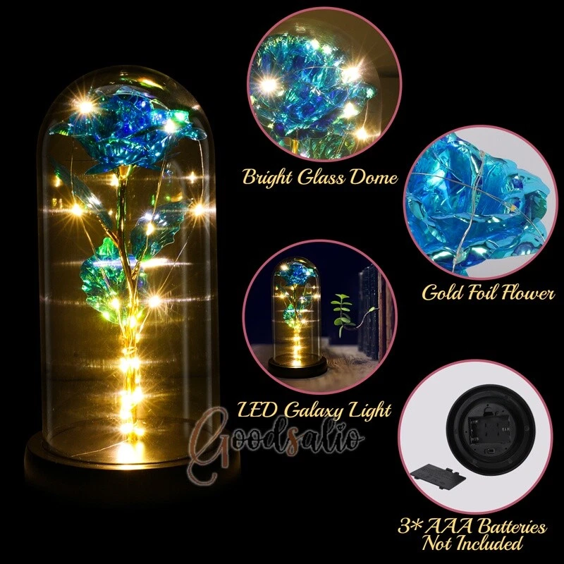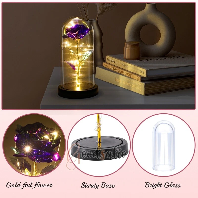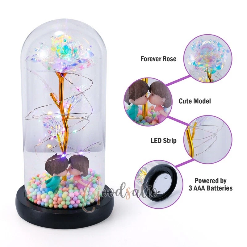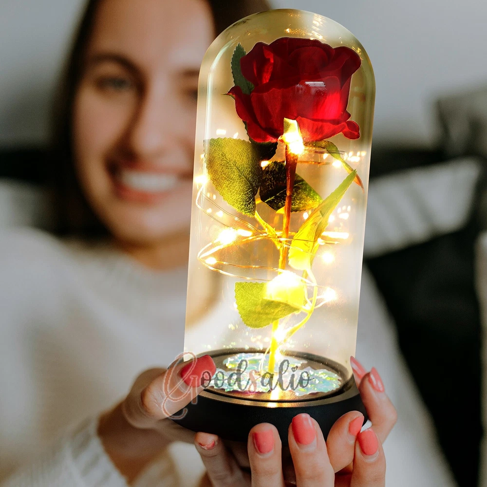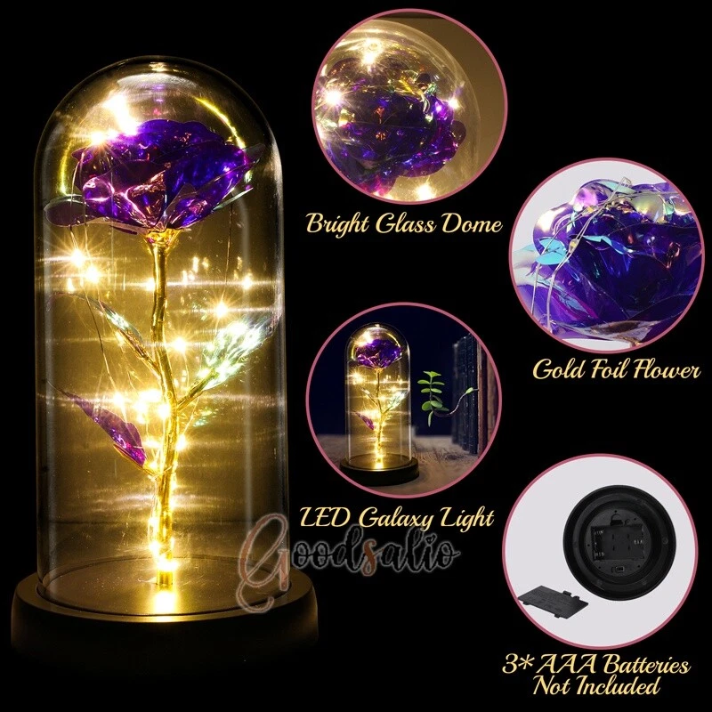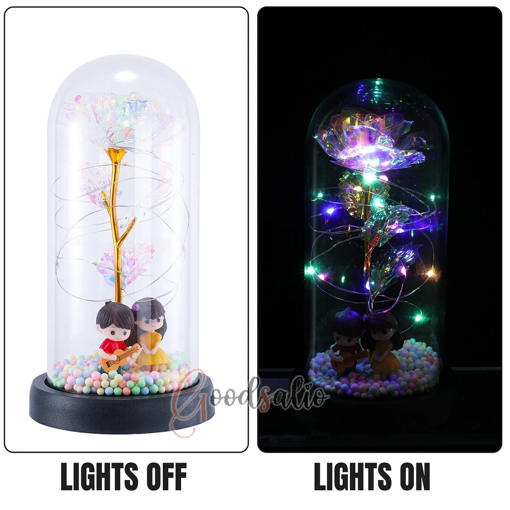 Rosa Roja En El Domo De Cristal luz LED con cubierta de vidrio Valentine's Day ★SPECIAL TIPS: √ Ship within 24 hours Via USPS from NJ ,USA √ 100% New & Excellent Quality √ Professional Customer Service √ Strictly QC, Each set was fully tested before shipping √ Offer delivery with Tracking Number If not 100% satisfied with our products, no-questions asked, we offer 30-day free return & money back. TypeA: Feature: -- Rose Flower: This colorful foil gold rose flower is made of high-quality plastic with a stable and smooth surface, the roses and petals displayed look very real, and it is also covered with a transparent dome that protects the rose flower and makes it timeless. -- LED Rose: The rose is wrapped around the colorful LED light strip, powered by 3 AAA batteries (not included). When turned on at night, it will light up with colorful constant lights, creating a romantic atmosphere for your home and bedroom at night. -- Romantic Symbol: The built-in kissing toy for little boys and girls is very cute. The rose will bring you infinite love and beauty. It not only symbolizes eternal love, but also a symbol of good wishes. -- Wide Application: Not only can be used as a decoration in the living room or bedroom, but also as a gift for relatives or lovers, very suitable for home decoration, holiday gifts, etc. Specification: Flower color: colorful/Red Light color: multicolor Material: plastic Lighting mode: always on LED lights: 20 pcs Battery type: 1.5V*AAA battery (not included) Usage: Suitable for home decoration, holiday gifts, etc. Product size: 21.5 (height)*11 (bottom diameter)*9 (thickness) cm/8.46*4.3*3.5inch Package includes: 1*Rose Flower Night Light 1*Packing Box Feature: -- Rose Flower: Made of high-quality plastic, which makes the rose and petals look very real, and also covered with a transparent dome, which can protect the rose flower and enjoy the beauty of the rose in 360°. -- Romantic Symbol: This is a beautiful LED light rose, which means enthusiasm and romance, not only eternal love, but also a symbol of good wishes. -- LED Roses: Roses wrapped around the LED light strip, powered by batteries, can be used for home decoration or create a romantic atmosphere during the day and night. -- Wide Application: Not only can be used as a living room or bedroom decoration, but also can be used as a gift for relatives or friends, very suitable for home decoration, holiday gifts, etc. Specification: Flower color: Red/Pink/Blue/Purple Light color: warm white Material: plastic Lighting mode: always on LED lights: 15pcs Uses: suitable for home decoration, holiday gifts, etc. Battery Type: 1.5V*AAA battery (not included) Product size: 20.5 (height) *11 (bottom diameter) *9cm/8.07*4.3*3.5inch Package includes: 1*Rose Flower Lamp 1*Packing Box Features: *Unique new design - Beauty and The Beast Rose Kit, was inspired by the movie "Beauty and the Beast" - a beautiful true love story. The tiny LED string lights are embedded in the petals, the warm white light illuminates the entire dome. *Durable,Safety and Heat-resistant Dome-Safety and light Dome cover allows LED light to shine more brilliantly in our high borosilicate heat-resistant glass than other covers, resists yellowing & discoloration. *Warm colored LED strings- LED string is made with a fine bendable copper wire that create any shape you want. *Charming decor for Indoor house,living room,bedroom,hotel,bars,to create romantic atmosphere. *Rose is the symbol of LOVE & BEAUTY,ROMANCE & PASSION,BEST WISHES,so it is the Ideal Gift for Valentine's Day, Mothers Day,Anniversary,Wedding, Engagement, Birthday. *Turn on the switch under the base,you will see the eternal beautiful flowers especially at night. *Lighting mode-Steady on Specifications: Materials: Glass Dome+ LED Lights + Silk Rose Rose Color:Red LED quantity:20LED Lighting color:Warm white Power source:3*AAA Batteries(not included) Dome diameter:9cm Base diameter:11cm thickness:2cm Overal height:22cm LED string lights length:100cm LEDs interval:5cm Package includes: Rose LED Lights*1(3*AAA Batteries not included) Features: 1.100% brand new and high quality! 2. Valentine's Day, Mother's Day, the best gift for Christmas. 3. Rose has always been a symbol of beauty, love and appreciation. 4. 99% gold foil leaves, peduncle with polyethylene 24K gold plating. 5. Gift package, well and safe. 6. A perfect gift for your spouse wife girlfriend to show your sincere love. A best gift for your mom to say" Thank you" and "You're loved always." Great gifts for anniversary, birthday, Christmas, Valentine's Day, Mother's Day, wedding. Specification: Weight:8.94g Note: Due to different lighting and shooting conditions, the color of the image may differ from the actual product. Please refer to the actual product. Package include: 1*rose 1*box 1*love base Feature -- Decorative Gift: This rose flower lamp is a romantic gift for your girlfriend on Valentine's Day or birthday, and can also be used as a room or bedroom decoration. -- High-quality Materials: The base of the glass cover adopts a wood grain base, which is durable, not easy to damage, with complex texture, stable and smooth surface, and no burrs. -- Transparent Glass: The glass cover of the rose lamp is made of transparent glass, which allows you to enjoy the beauty of the roses at 360 degrees. It is delicate and romantic, and is also easy to display and store. -- Roses and Butterflies: Roses are designed with simulation. Roses and butterflies in the rose lamp bloom in the glass cover, never fade and representing eternal love. Specifications: Color: Colorful platinum/Blue/Red Material: Plastic + Glass Cover Light color: Warm Color Lighting mode: always on Battery: 3 AAA batteries (not included) Uses: decoration, birthday gifts, holiday gifts Product size: 22.5*11*9cm/8.86*4.33*3.54inch Package includes: 1*Rose Light 1*String Lights 1*Gift Box Feature: -- Rose Flower: This colorful foil gold rose flower is made of high-quality p