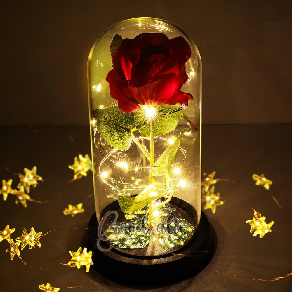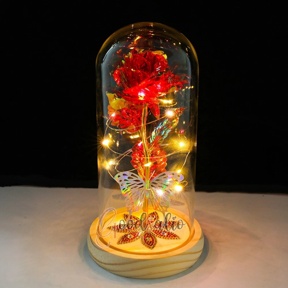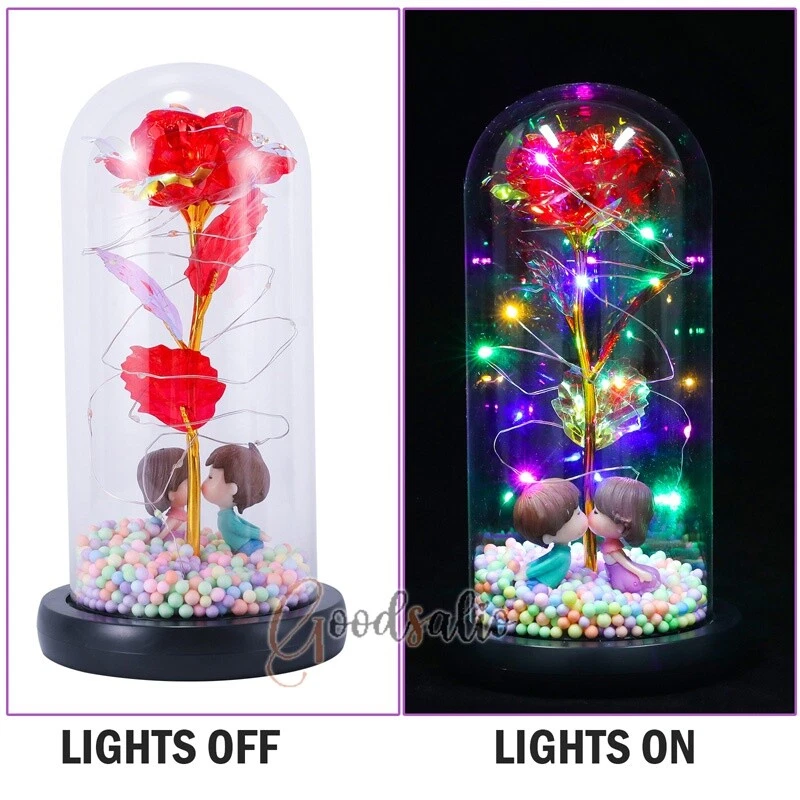 Rosa Roja En El Domo De Cristal luz LED con cubierta de vidrio Valentine's Day