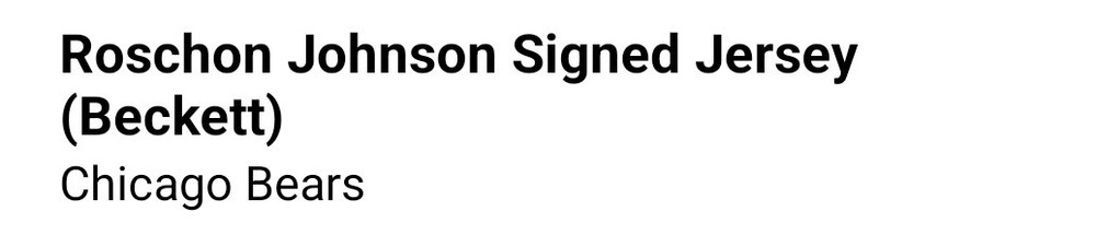 The product is an autographed Chicago Bears jersey by Roschon Johnson, certified by Beckett Authentication Services (BAS). This original autographed jersey is a must-have for any football fan looking to add a piece of memorabilia to their collection. The authenticity of the signature adds value to the item, making it a prized possession for fans of the Chicago Bears or collectors of sports memorabilia.