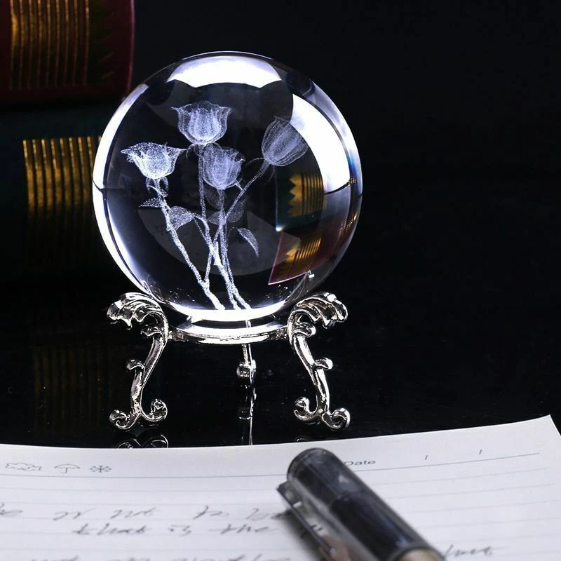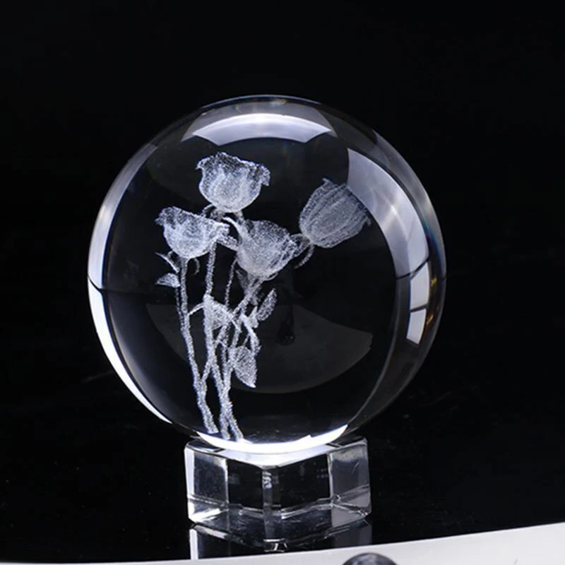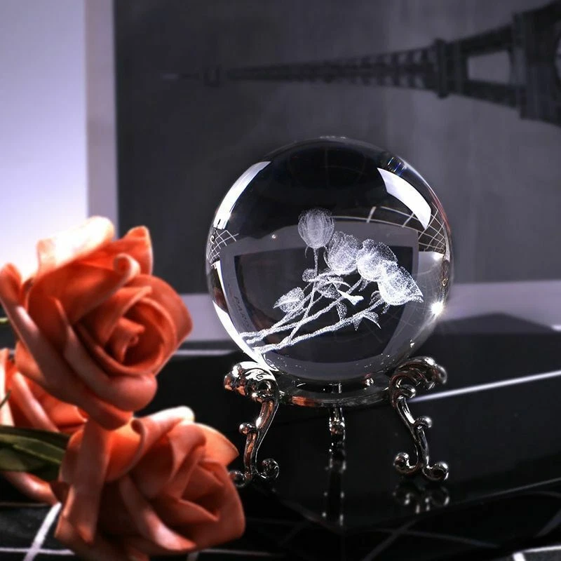 Rose Crystal Ball Miniature 3D Laser Engraved 60mm Globe Glass Sphere Home Decor Product Details: Item Type: Miniature Item Material: K9 Crystal Size: 60 mm Weight: 285 g Pattern: Love, Roses Color Options: Just Ball, Crystal Base, Silver Base, Gold Base Feature: 3D Laser Engraved The package consists of: 1 x Crystal Ball Miniature Note: Due to different computer monitors, colors of the product might appear slightly different compared to ones you see in the pictures.