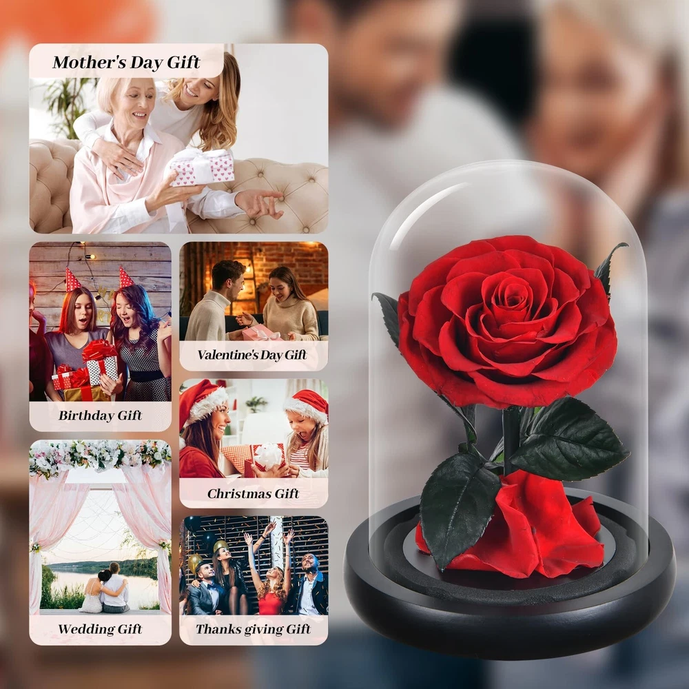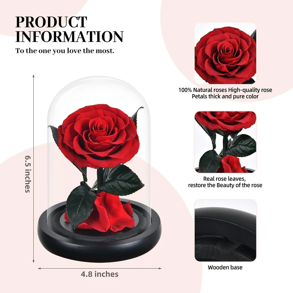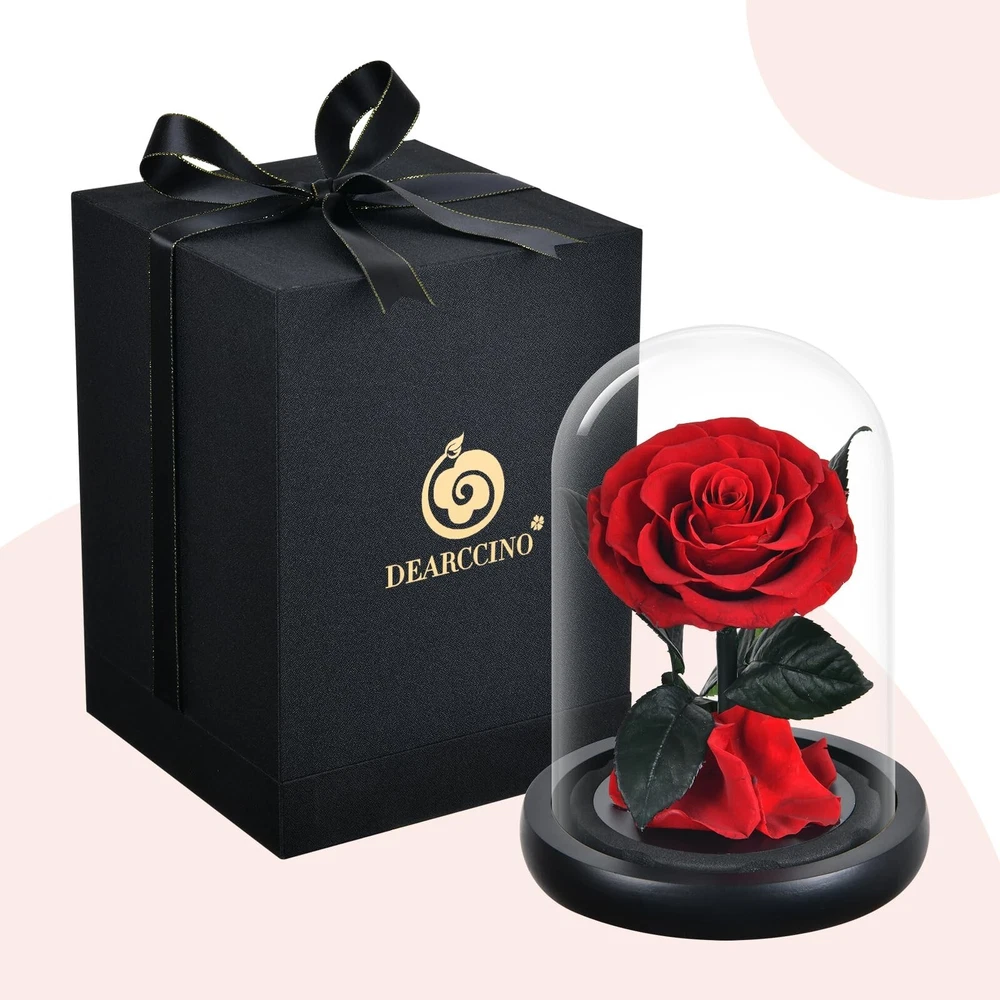 Rose Flower Gifts for Women,Mothers Day Flowers Gifts for Mom Wife from Daughter Son Husband,Birthday Gifts for Women Best Friend Her Girlfriend,Glass Rose Grandma Mom Gifts for Mothers Day (Red) Product Details Color: Red Brand: DEARCCINO MPN: HU001 UPC: Does not apply EAN: Does not apply Product Dimensions: 6.5 x 4.8 x 4.8 inches Item Weight: 2.38 pounds Manufacturer: DEARCCINO Country of Origin: China Item model number: HU001 Is Discontinued By Manufacturer: No Batteries required: No Valentines Day Gifts for Her:Preserved Rose is a symbol of eternal love, 100% real nature fresh Rose flower processed through unique preservation method, Real rose,real love.Eternal rose expresses your eternal love to your loved one. Valentines Rose Flowers Gift for Women: The preserved rose is a symbol of eternal true love and care. This is the perfect gift for her, for your girlfriend, wife, mom, grandma and your beloved, such as Valentine's Day gifts, Mother's Day gifts, Christmas gifts, Thanksgiving gifts, anniversary gifts,birthday gifts. Valentine's Day Rose Gifts for Mom Girlfriend:Keep the real rose in a cool place, without management, can be stored for 3 years, Show your forever love to your lover, family or friends with this romantic gift. Your loved ones will have a good mood whenever she looks at it. Valentines Day Gifts for Wife: A glass cover made of high-quality transparent glass will help protect your flower - protecting it from the influence of dust, and it will remain fresh and bright for a long time. Valentines Day Womens Gifts Idea for Her Day Holiday : Exquisite gift boxes are the beginning of surprises. The classic black silk gift box can be used as a gift box or as a protective box for roses. Life is too short to hesitate and wait. Now bravely express your love with our roses! Valentines Day Rose Flower Gifts For Women,Valentines Day gifts for Her,Mom Valentines Day gifts from daughter son.