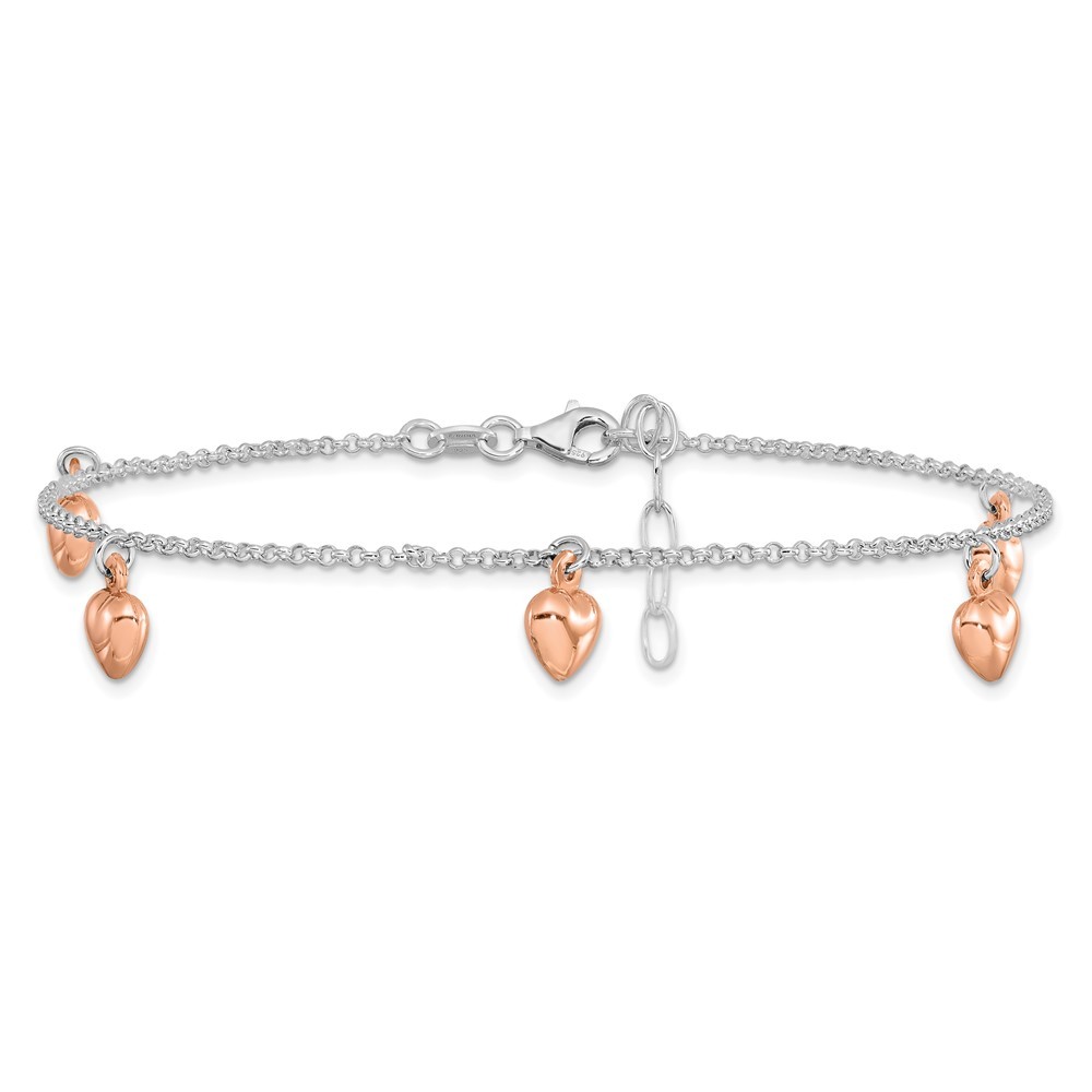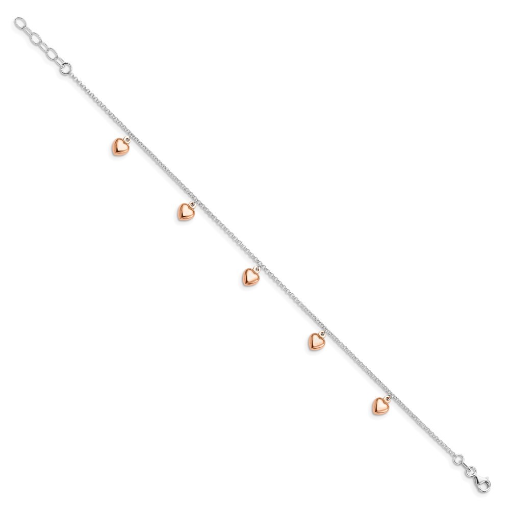 Features: Material Purity:925 Finish:Polished Length of Item:9 in Plating:Gold/Silver (Flash Plating) Chain Length:9 in Chain Type:Rolo Chain Width:1 mm Charm/Element Length:9 mm Charm/Element Width:7 mm Clasp /Connector:Lobster (Fancy) Extender Length:1 in Feature:Adjustable Manufacturing Process:Die Struck Material: Primary:Sterling Silver Width of Item:1 mm Jewelry Type:Anklets Anklet Type:Themed Gender:Women's Material Color:White Number of Elements:5 Feature 2:Hollow Plating Color:Rose Tone All weights and measurements are approximate and may vary slightly from the listed information. Welcome to diamond_6720 Payments We accept all Ebay approved payment. Please sent the payment to us within 8 days after the auction has ended, or you will have unpaid case auto open by eBay. Shipping Policy We will ship all items within 1 business days of purchase during the work week (M-F) excluding holidays. If you order on Friday, your order will be shipped the following business day. Tracking will be provided when it becomes available. We will only ship to a PayPal Verified Address. Please make sure your address is current and correct. If the information does not match, your order may be canceled. Buyers are responsible for all customs, duties and taxes for your respective countries. Delivery times for International Shipping will vary. California Buyers Pay 9.0% Tax on all orders. case auto open by eBay. Return Policy & Exchange Returns or Exchange are accepted. Buyer must contact us within 30 days after the item is received. Item must be returned in unworn and resalable condition. We will only issue a refund for the purchase price, excluding any shipping fees. If we are at fault, we will provide a full refund. Buyer is responsible for all return shipping costs. BUYERS FEEDBACK If you have any concerns regarding your purchase, please contact us via eBay Message, we assure you that a satisfactory resolution will be reached. Your feedback is very important to us Do remember to give us 5 star rating(*****) if you are satisfied with our product & service .