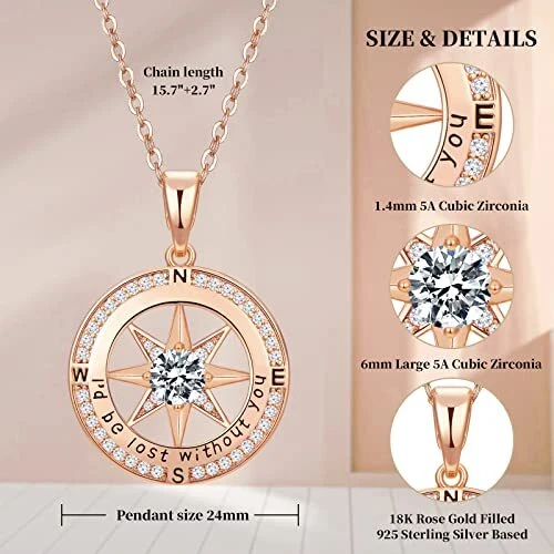 Return Policy Fast Delivery Trusted seller Rose Gold Compass Necklace for Women I'd Be Lost Without You Diamond Compass Pendant Jewelry For Her Girlfriend Mothers Day Gifts for Mom Wife Anniversary Valentines Day Birthday Gift for Wife Product Description Shipping Returns Payment Shipping Shipping is FREE to all addresses other than APO/PO boxes in the lower 48 states. All our stock ships from US-based warehouses. Shipped via USPS or UPS (depending on location and package weight) Unless stated otherwise, all orders will ship within 24-72 hours of your payment being processed. Check our feedback to see the great reviews of FAST shipping we offer. Returns Seller does not accept returns Payment We currently accept payment via eBay managed payments only. Once payment is cleared, we will dispatch your shipment within 1-3 business days. Please refer to the "Shipping" tab for more information regarding shipping speed to your destination.