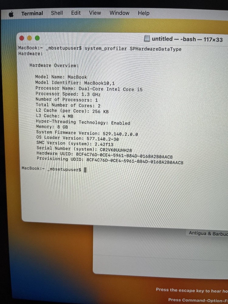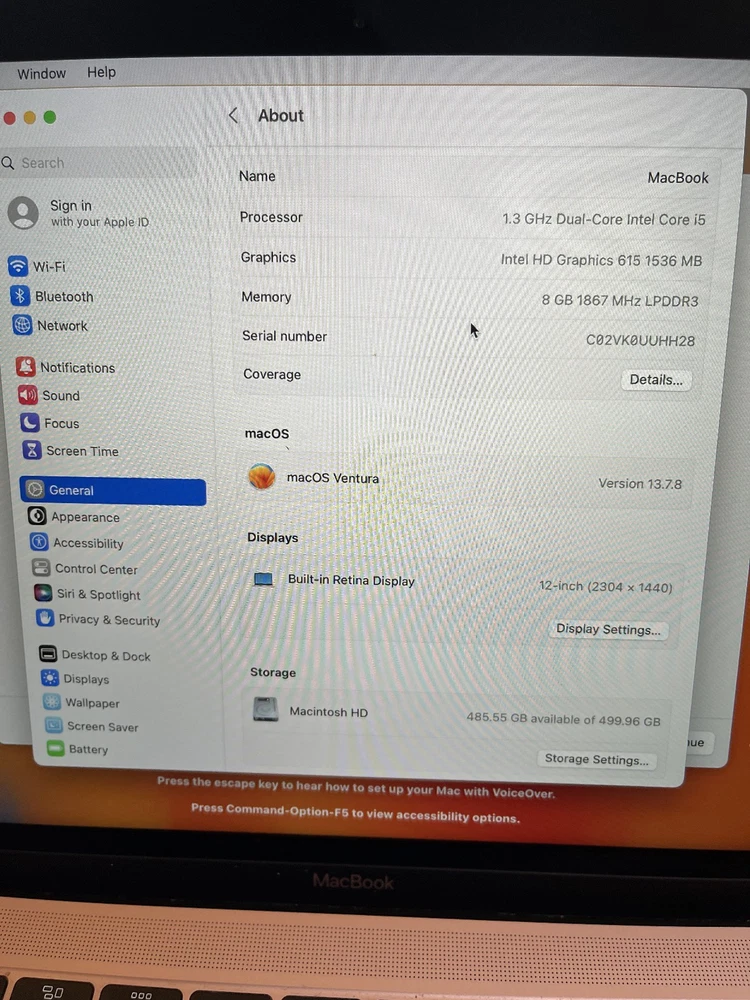 $ 179.5213-inch MacBook Air M1 8GB Ram, 256GB SSD, Silver, Model A2337, Used CLEAN