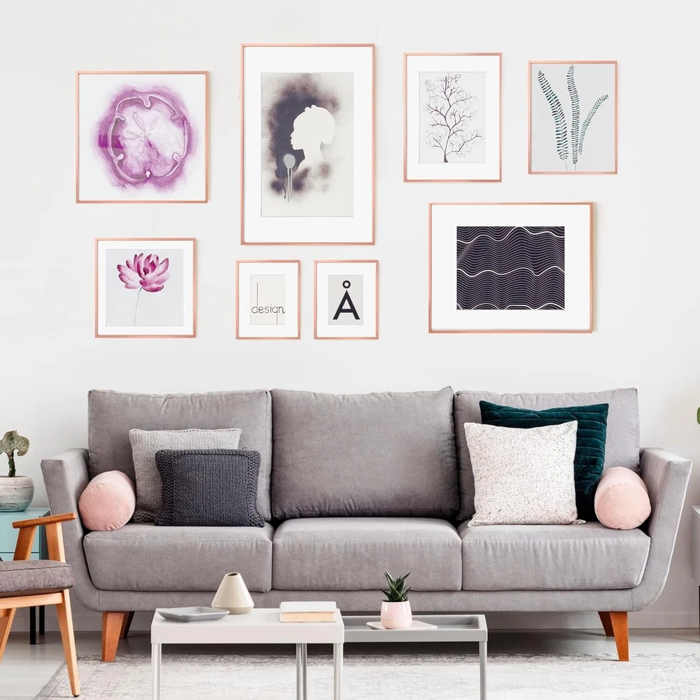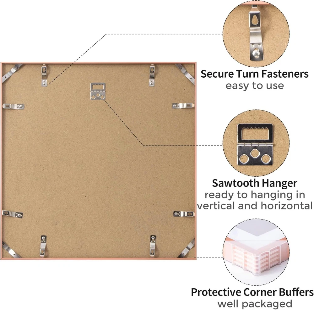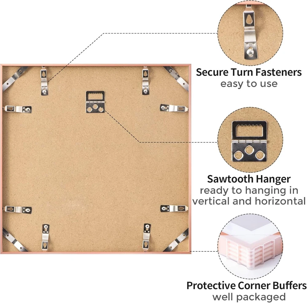 Rose Gold Metal Picture Frame 16x16 with 12x12 Mat - Set of 3 Elegant Displays