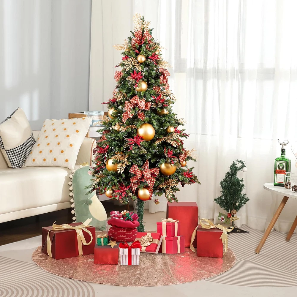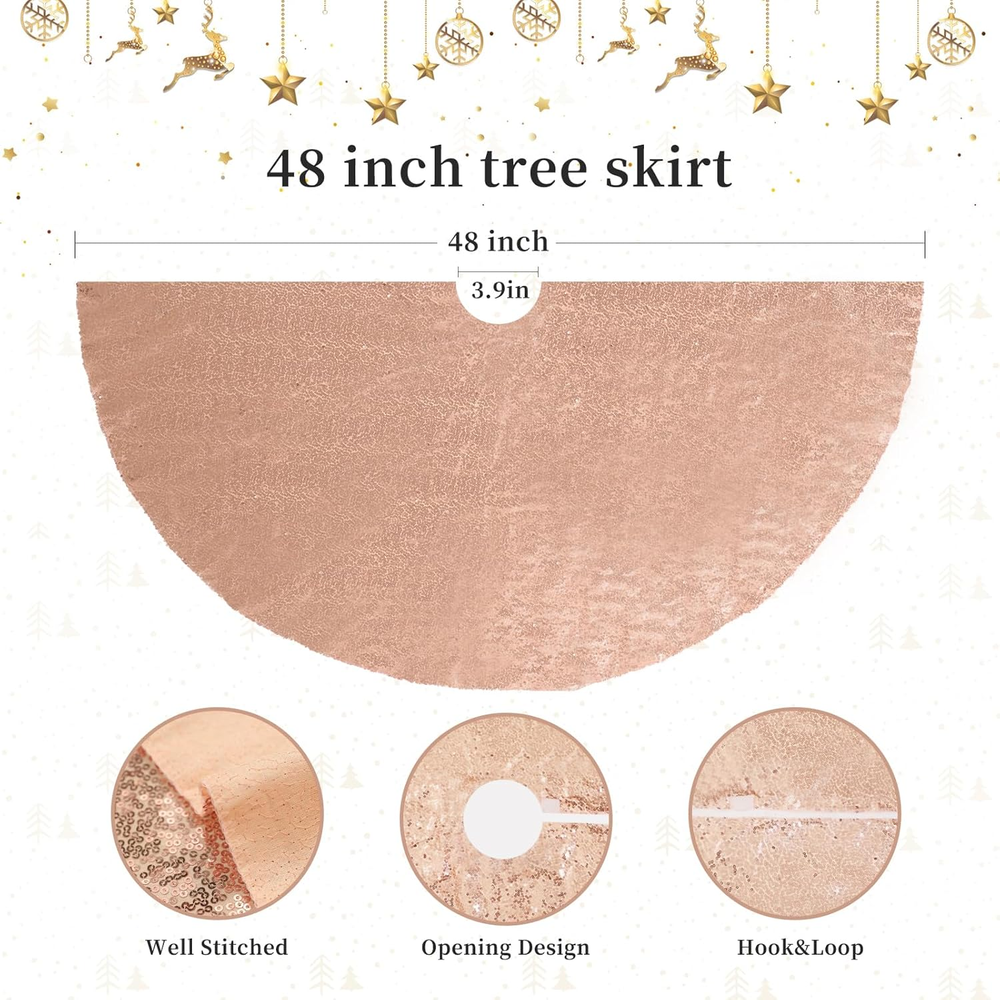Store New Arrivals Add to Favorite View Feedback Christmas Tree Skirt - Rose Gold Sequin, 48 Inch, Indoor/Outdoor Description Item model number rose gold 48in tree skirt Closure Type Drawstring Material Satin with Sequins Color Rose Gold Pattern Solid Item Diameter 48 Inches Item Weight 7.4 ounces Size 48IN 1.Perfect Size of Rose Gold Xmas Tree Skirt: The package includes 48 inches diameter rose gold Christmas tree skirt, suitable for under 8ft trees.Keep your Christmas tree looking beautiful with this high-quality tree skirt, designed to provide the perfect finishing touch to your Chrisrmas decorations. 2.Sparkly Premium Material: Rose Gold sequin tree skirt using satin mesh fabric covered with shiny 3mm round high density sequins,it will not easy to fall off and see through, more shiny elegant and luxurious. 3.Easy to Install:There are seamed hidden 6 Pcs magic sticks on the border of christmas tree skirt, you can use them to fixed the Christmas tree skirt,easy to fixed, More convenient than ties. .And the 4inch Diameter Opening Makes the Tree Skirt Easy to Surround the Christmas Tree. 4.Suitable Size : Rose Gold Sequin Christmas tree skirt, 48 inch tree skirt, suits for most size of Christmas Trees. You can put the ornaments you like on the tree skirt for more holiday decorations.Add a touch of elegance and warmth to your festive celebrations. 5.Tree Skirt Christmas Decorations:Add a touch of glamour and sophistication to your Christmas tree with this rose gold sequin tree skirt, creating a stunning focal point that will delight your family and guests. And protect the floor from being stained by resin or others. Product Description ABOUT US We offer the best prices around on high quality products. Our E-store includes media such as books, movies, music and games while offering electronics, toys, sporting apparel, clothing, tools, general home, garden items and more. SHIPPING We are always working hard to ensure your package arrives as soon as possible. Please understand that some factors like weather, high postal traffic, and the performance of shipping companies are outside of our control. We offer free shipping to the lower 48 states and ship within 2 business days of payment, usually sooner. We do not accept P.O. Boxes. Please provide a physical address. RETURNS We offer a 30-Day Return Policy on items which you are not completely satisfied with. You have the option for a full-refund or an exchange of the item. No returns are available on items shipped outside of the USA. PAYMENT We accept PayPal. CONTACT US This page content is yet to come Please ad us to your favorite seller and visit again later Thank You