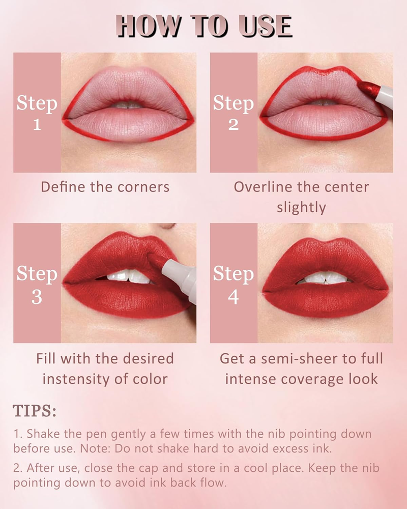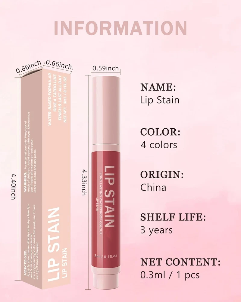 Lip Liner Stain Pen-1Pcs Rose Pink Hydrating Lip Tint, Longlasting Waterproof Smudgeproof Lip Tint Stain Lip Color, Matte Lip Stain Liquid Lip Liner Pencil, Lip Makeup Gift for Women-03 MATTE LIP STAIN PEN - This lip liner with 4 colors to available, it is highly pigmented, smooth in texture, cruelty-free, and can be used not only as lip liner, but also as lip stain and lipstick. Extremely easy to apply, and the rich colors give a matte finish for a glamorous lip look! PRECISE LIP TIP COLOR PENCIL - This high-end lip liner pencil, unlike ordinary traditional lip pencils, adopts a unique nib design effect. The precision allows you to create a precise and even lip line, resulting in a professional and flawless finish. Achieve a flawless look with every application, whether you are defining your cupid's bow or filling in for a bold statement. LONG LASTING & WATERPROOF - The lip tint is long-lasting, waterproof, smudge-proof and fade-resistant color that stays put all day. Our lip stain with quick-drying and highly pigmented color characters, drying without easy color loss and staying put on your lips for 16 hours, ensuring your vibrant look endures all day long for any occasion. EASY TO APPLAY & CLEAN - This lip stain pen is quick and easy to use, just gently apply, you can get the color, if you feel that the color is not enough, you can also apply a few more times to make the color more intense. In addition, it wipes away easily with gentle makeup remover or a damp cloth, leaving your lips feeling soft and nourished. PERFECT MAKEUP GIFT - Both individual sticks and sets are beautifully packaged in premium packaging. Suitable to be bought as personal use or as a gift for your mom, wife, friends on Birthday, Thanksgiving day, Christmas, Valentine's Day, Women's Day, Mother's Day and other Festivals! Treat yourself or someone special to the gift of perfect makeup. Lip Liner Stain Pen Set-4Pcs Matte Lip Tin, Long Lasting Waterproof Smudge-proof Lip Color, Hydrating Lip Stain Liquid Lip Liner Pencil, Precise Chisel Tip, Lip Makeup Gift for Women, Cruelty Free, Party Holiday Birthday Daily Use, Thanksgiving Lip Makeup Gift Specification: Item Name: Lip Stain Pen Target Area: Lips NET: 3ml / 1 pc Features: 1. The Matte Liquid Lipstick is stronger waterproof, non-sticky, long lasting, smooth and high-pigmented. 2. Not only as lip liner, but also as lip stain and lipstick. 3. Multiple colors are available to choose, vivid colors will meet your every need. 4. Not tested on animals. 5. As a Perfect Gift. Note: 1. Due to the monitor resolution and shooting angle, there will be a certain color difference in the real object, and the pictures are for reference only. 2. Please convey a skin test before use. 3. Please put it in a dry and cool place, keep it away from children. Dimensions 2.56 inches x 6.81 inches x 0.63 inches. Weight: 0.32 oz Specifications Color 03# Finish Type Semi-Matte Skin Type Oily, Combination, Dry, Normal Item Form Liquid Package Dimensions 6.81 x 2.56 x 0.63 inches; 0.32 ounces Shipping: Shipped from the USA. Fast delivery within 2–3 days. Payment: PayPal, credit card, bank transfer. Returns: 30-day free return – we cover the shipping cost. Quality: Made in Europe/USA/China. No customs fees. VAT invoice on request. Feedback: You’ll automatically receive positive feedback after payment.