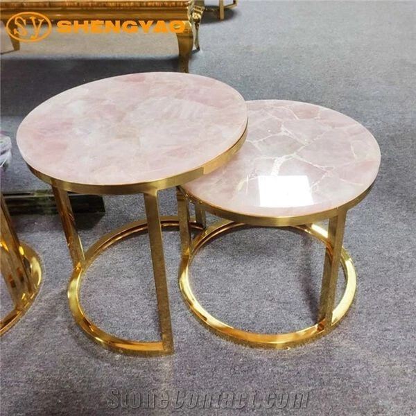 Rose Quartz Coffee Table Top 15x15 with Agate Quartz Design