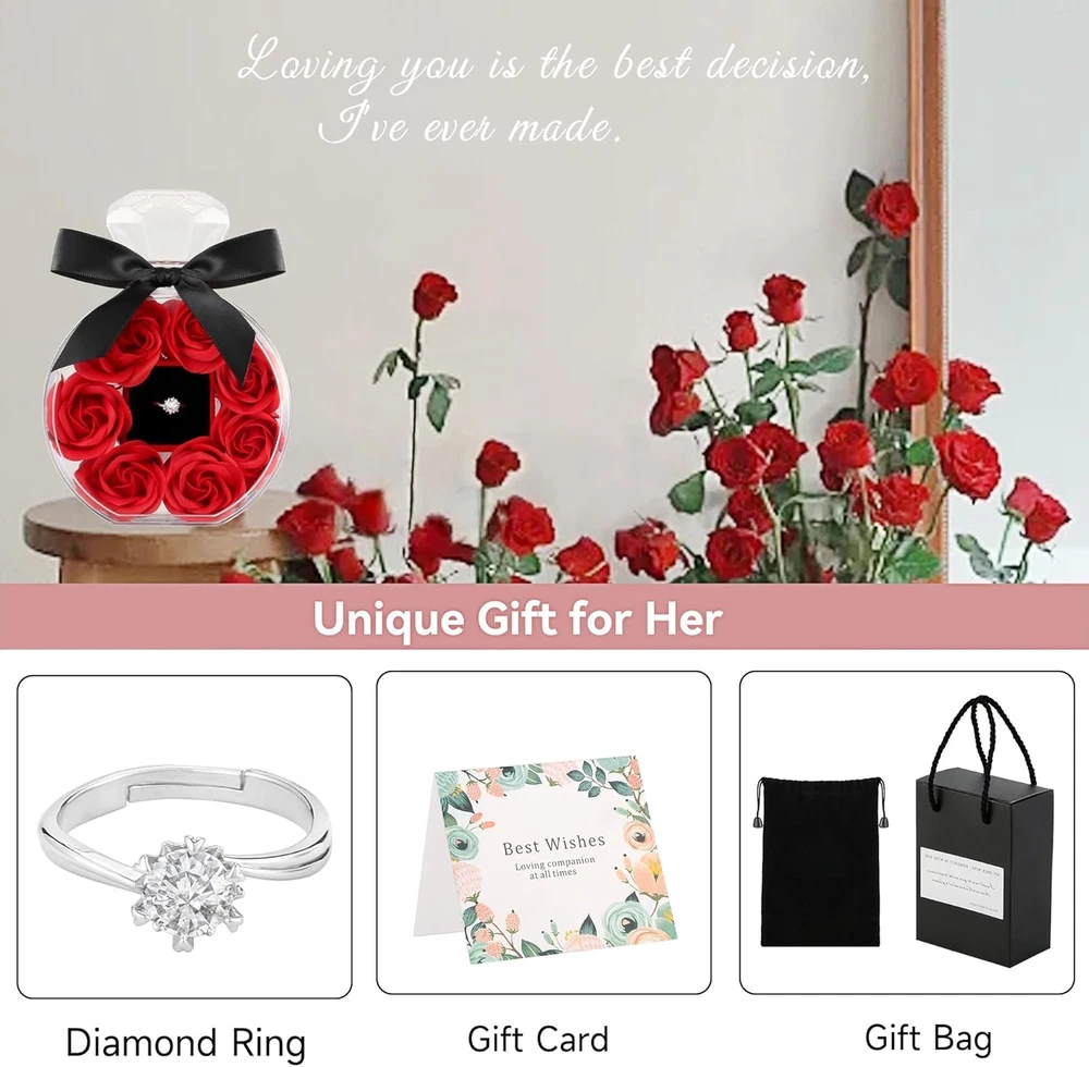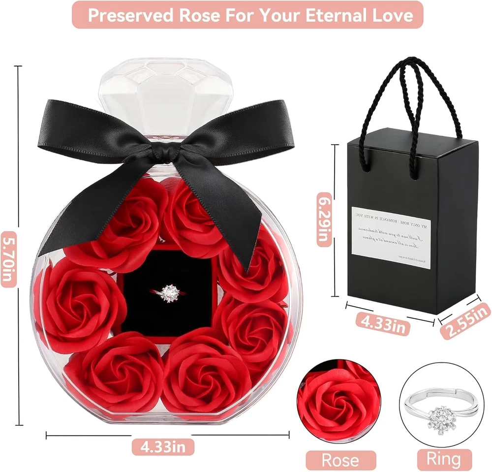 Store New Arrivals Add to Favorite View Feedback Contact Fast deliveries to the customer's home Quality customer service John Make the customers happy! Rose Ring Box Birthstone Jewelry Artificial Preserved 7 Roses Flower Gift for Women Girlfriend Wife Mom Grandma Valentines Mothers Day Anniversary Birthday Unique Romantic Gifts(Red) Description Meaningful Gift Set for Her: Elevate her special moments with this exquisite Everlasting Rose Gift Box, a masterpiece tailored for the remarkable woman in your life. Inside lies a symphony of seven breathtaking eternal roses, a classic Cast copper opening moissanite ring nestled in an elegant ring box, and a pristine greeting card awaiting your heartfelt inscriptions. Perfect for birthdays, anniversaries, or spontaneous declarations of love, this ensemble embodies timeless elegance DIY a Personalized Gift: First,remove ribbon on the side of perfume bottle. Next, open cap and take out original ring. Then, replace it with a ring, earrings, or necklace that she adores. After that, adjust the arrangement of the artificial flowers to make them perfect. Finally, reattach cap and either use a hairdryer to heat the glue points or apply glue to fix ribbon. Congrats! You've created a thoughtful and unique gift Personalize with Love:The gift set comes with a blank greeting card that allows you to express your heartfelt wishes in your own handwriting. Whether celebrating a special occasion or simply honoring a deep friendship, your personalized message will add a warm touch, making her feel uniquely loved and appreciated Versatile for Any Occasion:The timeless beauty of the eternal roses harmoniously blends with any ambiance, transforming candlelit dinners, weddings, parties, or even her living spaces into romantic havens. When paired with the shimmering moissanite ring, this set creates an atmosphere that breathes life into every ordinary day Crafted for Eternity: Each box is handcrafted using unique techniques, ensuring every flower is unique. Beautiful timeless rose gifts require minimal care—just keep them out of direct sunlight, they will remain vibrant for years to come. The bottle, graced with an exquisite bow, rests gracefully within a lavish, premium flannel pouch. The acrylic perfume containers meticulously preserve the rose freshness by efficiently warding off dust, ensuring their enduring charm The preserved flower rose ring box makes a timeless gift for your girlfriend, wife, mother, or grandmother, perfect for Valentine’s Day, Mother’s Day, anniversaries, Thanksgiving, birthdays, or any special occasion. This stunning gift is made from roses, carefully preserved to maintain their natural freshness, symbolizing everlasting love and affection. Each rose is thoughtfully arranged and presented in a personal and romantic way, making it a truly unique and heartfelt gift. Imagine saying “I love you” with this exquisite box, or asking “Will you be my girlfriend?” in a memorable way. It’s also a beautiful way to express “I miss you” during the holidays or Christmas. The delicate and charming design of this everlasting flower ring box will capture the hearts of your loved ones and remind them of your enduring love. The Everlasting Flower Rose Ring Perfume Bottle makes a lasting impression and is a gift worth cherishing for any holiday or special moment Item model number TC-08-29-00 Batteries required No Product Dimensions 4.3 x 2.3 x 5.7 inches Country of Origin China Item Weight 5.9 ounces Color Red Is Discontinued By Manufacturer No ABOUT US We offer the best prices around on high quality products. Our E-store includes media such as books, movies, music and games while offering electronics, toys, sporting apparel, clothing, tools, general home, garden items and more. SHIPPING We are always working hard to ensure your package arrives as soon as possible. Please understand that some factors like weather, high postal traffic, and the performance of shipping companies are outside of our control. We offer free shipping to the lower 48 states and ship within 2 business days of payment, usually sooner. We do not accept P.O. Boxes. Please provide a physical address. For shipping outside of the continental USA, we only use eBay's Global Shipping Program. The item is shipped to KY and then sent to the rest of the world. International customers are responsible for all duties and taxes. Continue to 'check out' to calculate costs for shipping the item to your country. Messages regarding eBay's Global Shipping Program MUST be directed at eBay EXCLUSIVELY. RETURNS We offer a 30-Day Return Policy on items in which you are not completely satisfied with. You have the option of a full-refund or an exchange of the item. No returns are available on items shipped outside of the USA PAYMENT We accept PayPal. CONTACT US This page content is yet to come Please ad us to your favorite seller and visit again later Thank You CUSTOMER SATISFACTION We try our very best to make sure every customer is completely satisfied. If there's a problem, message us! We're happy to help. WE ACCEPT