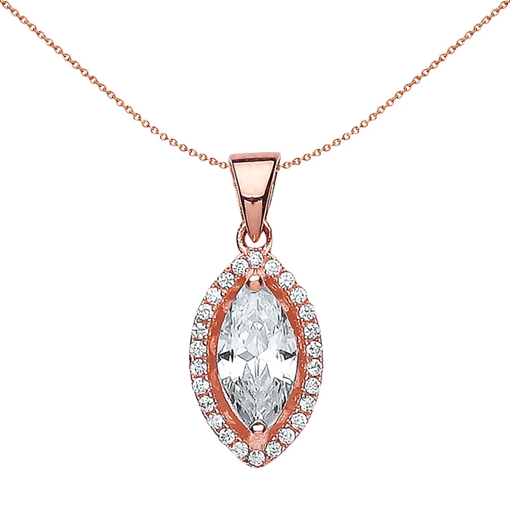 Welcome to Jewelco London and thank you for visiting! Jewelco London presents this piece from its latest collection of 925 Sterling Silver Rhodium Plated Jewellery. Ladies Rose Gold-Plated Sterling Silver Marquise Cubic Zirconia Halo Charm Necklace 18 inch . Includes a complimentary Rose Gold-Plated Sterling Silver chain, which can be adjusted to 16, 18 or 20 inches. About Us Body Jewellery Anklets Body Bars Nose Studs Toe Rings Mens Cufflinks Masonics Earrings Creoles Drops Hoops Studs Medical Awareness Gold Silver Neckwear Belcher Curb Figaro Necklace Pendant Chain Rope Pendants Charms Crosses Hearts Lockets Medallions Personalised ID Bracelets Initial Pendants Nameplates Rings Rings Cluster Engagement Eternity Fancy Solitaire Sovereign Wedding Wishbone Wristwear Bangles Bracelets GVP320 39.99 Welcome to Jewelco London and thank you for visiting! Jewelco London presents this piece from its latest collection of 925 Sterling Silver Rhodium Plated Jewellery. Ladies Rose Gold-Plated Sterling Silver Marquise Cubic Zirconia Halo Charm Necklace 18 inch . Includes a complimentary Rose Gold-Plated Sterling Silver chain, which can be adjusted to 16, 18 or 20 inches. Height 21mm (14mm excluding bale) Width 9mm Length 450mm Weight 1.5g Weight 1.5g Centre Stone 5x10mm Gemstone Cubic Zirconia | Marquise | White Gemstone 2 Cubic Zirconia | Round | White SKU: GVP320 Jewelco London Luxury Moon Dust Gift Box Reasons for buying from Jewelco London Member of The Responsible Jewellery Council (RJC) Distance Selling Act protection Genuine products only No hidden tricks Competitive pricing Free standard UK delivery Free guarantee with every purchase Dedicated customer service team All products comply with the 1973 Hallmarking Act Brand new products only Free beautiful luxury packaging Fast shipping Feedback Our aim is to deliver great value quality jewellery at unbeatable prices. We would very much appreciate your time in completing the 5 star sellers rating whilst leaving feedback. Customer Service is extremely important to us. Should you not be 100 percent satisfied with our service please contact our customer service team who will make every effort to resolve the issue. Important information about your Purchase Weights and Measurements: Jewellery measurements and weights are based on calculated averages and can vary. Dimensions are for guidance purposes only. Jewellery is priced by piece and not by weight. Slight variations will not have an effect on the value of your jewellery. The image size is based on the size of your computer monitor or device. Please use the diagram below, which we hope you find useful: Hallmarking: Jewelco London supply jewellery made from precious metals. Jewellery is hallmarked in accordance with United Kingdom hallmarking laws. Gold items weighing less than one gram and silver items weighing less than 7.78 grams do not require a UK hallmark. Shipping: For added peace of mind, and security, we send all our jewellery in plain, tamper-proof envelopes. We aim to ship your order within 1 business day in general, unless otherwise stated. Please contact our Customer Service Team should you require your jewellery by a certain date before making your payment. All UK orders are delivered by Royal Mail. Overseas orders are sent via eBay's Global Shipping Programme, DHL Express, or Globalmail (DeutschePost) International Shipping: Items are shipped from our warehouse in London, United Kingdom. Regarding any relevant fees which may be imposed by your country's customs, as with all imports, the buyer assumes responsibility for those costs. These may include: Customs fees Import tax Handling fees We actually recommend purchasing the same product from our eBay UK Shop instead. By doing this, any customs/import fees are paid upfront, providing a smoother delivery service, and the shipment itself will be managed directly via eBay, for added reassurance :) Returns Policy Because Jewelco London is a UK based VAT registered business, most "Buy It Now" purchases are protected by United Kingdom Distance Selling Regulations. This means you have 30 working days from the day after you receive the item to return it for credit. For Health & Hygiene reasons Earrings and Body Jewellery that have been tried on are ineligible for return. We have technology that can detect worn jewellery. Bespoke items (e.g. Wedding Rings) or items which have been altered to the Buyer's preference are also ineligible for return. *This does not affect your Statutory Rights* Please ensure that items are in their original condition, unworn, with the original Box and a copy of the Invoice/Delivery Note. Should you wish to contact us before returning an item, please do so via eBay. *RETURN ADDRESS CAN BE FOUND ON YOUR DELIVERY NOTE* Exchange: Should you wish to exchange an item for another size or length, please contact our Customer Service Team via eBay or via direct email. You will need to return the item unused in its original condition together with Invoice/Delivery Note and we will exchange it for the required size, subject to availability. This may incur additional charges, please contact us for more information. Faults: Jewelco London will replace or repair faulty goods, providing we are advised of the fault upon receipt of the item. Jewellery purchased from Jewelco London is supplied with a free 12 month guarantee from the date of order. Items returned under the guarantee must adhere to the relevant Terms and Conditions. Jewelco London will repair or replace the item at their discretion.