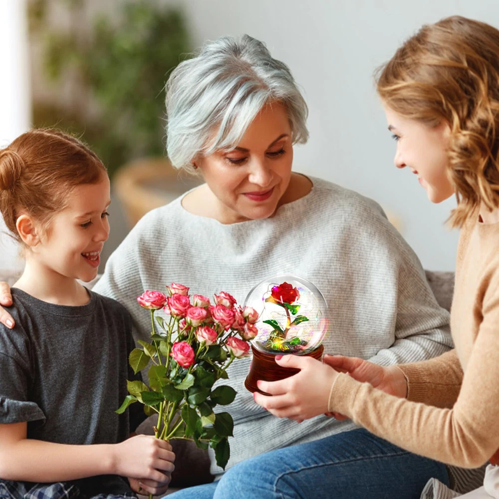 Mothers Day Rose Gifts for Mom, Beauty and The Beast Snow Globe Rose Music Box Color Changing Light Musical Snow Globe Rose Gift for Women Flower Gifts Women Gifts for Her,Mothers Day,Anniversary,Birthday Red Forever Roses Gift Flower - Will never wither away, symbolize everlasting love; The mountain-shaped on base, a symbol of toughness and eternity; while illuminated by the string of lights more luxurious, exquisite and full of artistic sense. It is a unique artwork, Very suitable as Mother's Day, Christmas, or birthday gifts for your mother, grandma, or mother-in-law. Rose Gifts with LED Strip Lights - The eternal rose snow globe music box is the best gift for women, It is well known that women love flowers, and although mothers grow old, their appreciation for flowers never fades. If a mom receives a forever flower from their daughter son or husband on Mother's Day, Valentine's Day, Birthdays, Anniversaries, Christmas, Thanksgiving, Engagements, and Parties, she will be surprised beyond measure. Unique Mothers Day Gifts for Mom - The glass rose snow globe is wrapped around an LED Strip tree lamp, Powered by 3 AAA batteries(not included). Just turn on the bottom switch, and it will glow warm light that can make your mom, woman, wife, or Grandmother's heart feel pleasure on Mother's Day, Birthday. Eternal love - Preserved flowers are known as flowers that never wither; if you receive eternal flowers snow globe, it means that the other party's love for you will never change. Guardian love - The eternal flower implies the protection of love, family and friendship. Beauty and The Beast Gifts - valentine snow globe is perfect for your lover on mother's day,Anniversaries. Love for you will never fade How to use: Turn on the left switch, the light will light up; Turn on the right switch, the snow globe will plays the music. Material: Plastic+Glass Size:3.9x5.3 inches Package: 1x Rose Snow Globe 1xScrewdriver Valentines Snow Globe - The base is made of plastic. Inside the snowball is a resin rose and mountain, and it is compared with colorful-plated and sequin snowflakes. The red rose in glass perfectly and eternally, which more transparent and without impurities. Colorful LED Light - The forever rose flower in snowglobe is wrapped around an LED Strip light, Powered by 3 PCS AAA powers(Not included). Two Mode: Turn on the left switch, the light will light up; Turn on the right switch, the snow globe will plays the music and light up. Mothers Day Rose Gifts for Mom - Preserved red rose flower gifts for her mom women. This rose flower snow globe music box will never wither and die. A meaningful gift, an unique love. Snow globe rose also would look amazing as a centerpiece in your living room or bedroom. Preserved Flowers Snow Globe - Eternal rose flowers music box is very suitable as Mother's Day Gifts, Valentines Day Gifts, or birthday gifts for your mom, wife, girlfriend, grandma, or mother-in-law. The eternal rose is the best gift for women, she will receive your infinite love and be surprised. Beauty and The Beast Rose - Size:3.9x5.3 inches. Each product is wrapped in gift box, make the gift more ceremonial! Good idea to decorate your home, office, bar, or any place to increase the romantic atmosphere with this light-up rose snow globe. Rose Music Box - Mother's Day Gifts for Mom, Christmas Gifts For Girls, Christmas Home Decor, Christmas Gifts For Grandma, Girls Christmas Gifts, Women Christmas Gifts, Unique Christmas Gifts, Christmas Gift For Wife, Christmas Outside Decorations, Christmas Gifts For Sister, Christmas Gifts For Girlfriend, Girlfriends Christmas Gift