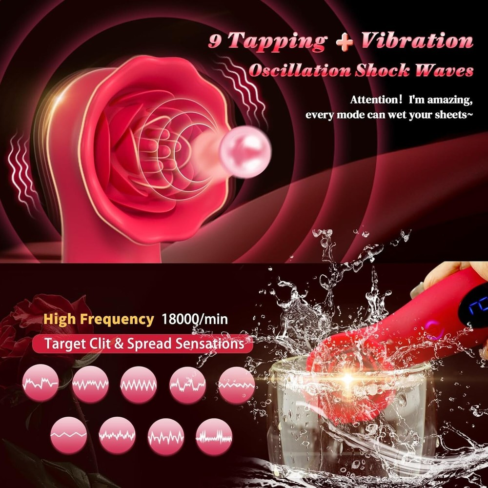 Rose Tapping Vibrator with Oral Clit Licking Tongue & G-Spot Stimulator for Women