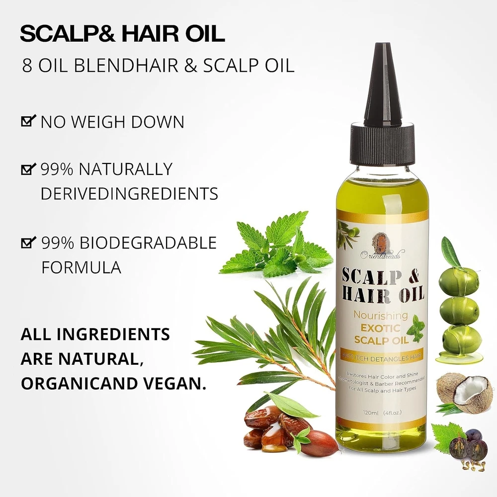 Organics Rosemary Mint Scalp & Hair Strengthening Oil w/ Biotin 4 oz /120ML (PACK OF 1) Orientdeads Rosemary Mint Scalp & Hair Strengthening Oil With Biotin & Essential Oils, Nourishing Treatment for Split Ends and Dry Scalp for All Hair Types, -4 Fluid Ounces HAIR TREATMENT OIL: Hydrates curly hair with moisture to help protect hair from breakage and split ends; Scalp feels moisturized & natural hair is stronger; Great for all hair types and styles: straight, wavy, curly, coily & protective styles FOR WEAK, BREAKAGE-PRONE HAIR: Blend Formula of Sunflower Seed, Olive, Jojoba, Coconut, Black Cumin Seed, vitamin e, Soybean and Castor Oil deeply penetrates the scalp to calm & sooth dry damaged hair that support the strength of curls as they grow SOOTHE DRY SCALP: This rich blend of over 30 essential oils and nutrients deeply penetrates the scalp to increase circulation, combat dandruff, and comfort itchy, sensitive skin while working to strengthen, lengthen, nourish, and protect hair HOW TO USE: After shampoo and conditioner, on damp or dry hair, use pointed tip applicator to apply directly to scalp; Massage gently into your scalp and hair; Do not rinse out; style and control frizz; Use daily or often for best results SAFE FOR ALL HAIR TYPES: Our versatile Rosemary Mint Scalp & Hair Strengthening Oil promotes radiant hair for all hair types and deeply nourishes types 3A to 4C, chemically-treated hair, braids, weaves, and both low and high porosity level hair Note: This Product is designed to deliver optimal results, offering high-quality performance and satisfaction. Please note that individual experiences and outcomes may vary based on personal use, preferences, and unique circumstances. For best results, we recommend following the provided guidelines and ensuring the product is used as intended. Product result may vary for every individual.