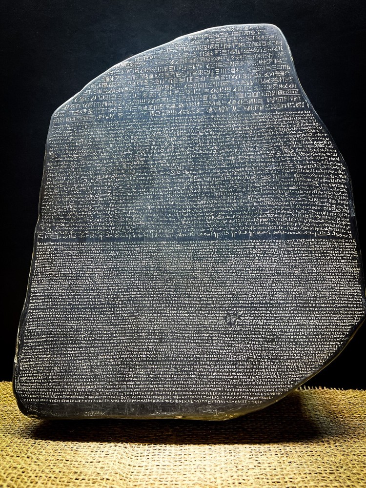 This item is 100% handmade with love and passion by the best sculptors of our family. Brand: EgyptologyStoreEG. Item Description: Rosetta Stone Musem Reproduction Sculpture Wall Relief Reproduction in Museum Original at the British Museum, London. 203 B.C. When the last temple was closed in the 6th century A.D., the skill of reading hieroglyphs was lost until the discovery of this slab of basalt stone found at Rosetta in the western delta in 1779. On the stone are three scripts. The bottom section is in Greek, the center in demotic (popular script originated in the XXVI dynasty, 700-600 B.C. and widely used for the next thousand years.), and the top in hieroglyphs. The stone was first set up in a temple. It was an elaborate "thank you" to the Greek ruler of Egypt, Ptolemy V, who reigned in the 2nd century B.C., for favors that he had given to the priests. The three scripts contained the same text, allowing the hieroglyphs to be translated. French archaeologist, Jean-Francois Champollion spent many years deciphering the symbols of the Rosetta stone. Champollion's work in the Rosetta stone was an important breakthrough in the translation of Egyptian hieroglyphs. Ancient sculpture replica from the original one, 100% Egyptian HAND MADE Made from Basalt Stone Height: 13 Inches Width: 10 Inches MADE IN EGYPT Payment: We are currently accepting many payment methods. Shipping: The items are shipped via DHL express company. Packaging: All the items ordered are 100% securely packaged with utmost efficiency and visually appealing appearance. Return Policy: You can return our product and get a full refund or exchange the product with another one, however the following conditions must be met: 1)Product must be returned within 14 days from the receival date. 2)In case an exchange is made, the shipping costs is paid. 3)Product must be returned in the same condition that it was received in. 4)Product must be returned in its original packaging. Feedback is highly appreciated :)