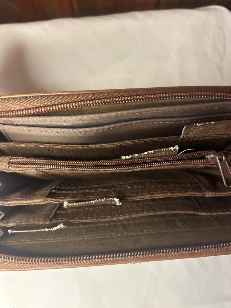 This Rossetti wallet and coupon organizer set is the perfect addition to any woman's accessories collection. Crafted with high-quality materials and designed with functionality in mind, this set is ideal for keeping essentials organized and easily accessible. The brown color adds a touch of elegance to any outfit, making it a versatile accessory that can be dressed up or down. The wallet and coupon organizer set is specifically designed for women and features the Rossetti brand name. With multiple compartments and pockets, it is perfect for storing cards, cash, and other essentials. Whether you're running errands or heading out for a night on the town, this set is a must-have.