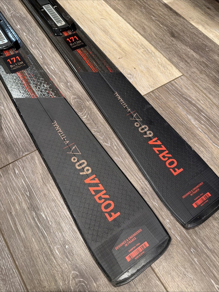 NOTE: Skis and Bindings Will Ship in Separate Boxes. SKIS ARE IN VERY GOOD CONDITION. There are a couple of shallow scratches on the base and topsheet. The Rossignol Forza 60° V-TI Skis set a new standard for advanced carving. Oversized dimensions combined with Supersize Sidecut support aggressive angulation and maximum control through high speed arcs. Matched with race-proven construction, this innovative shape lets you fly from turn to turn with full engagement, full control and maximum fun. Race-Proven Dampening PEFC™ certified Poplar Wood Core limits vibration for race-proven stability with a focus on sustainability. Confident Stability, Full Control Rossignol's patented Line Control Technology eliminates counter-flexing for fluid stability in all conditions. Maximum Edge Control Rectangular Sidewall construction delivers race-proven grip, precision, and power. Smooth, Powerful Feel Titanal beam absorb vibration and transfer power to ski. Full, Precise Power Transfer Reinforced Torsion Tip creates precise, full power transfer through the tip. Power Steering Supersize Sidecut matched with wide dimensions and longer lengths for maximum steering power through the turn. Premium, Durable Finish Our Premium Hardtop topsheet and integrated Tip Protector maximize durability and enhance graphics to extend the life of your skis. All Conditions Glide Sintered Black Base for all-conditons glide and durability