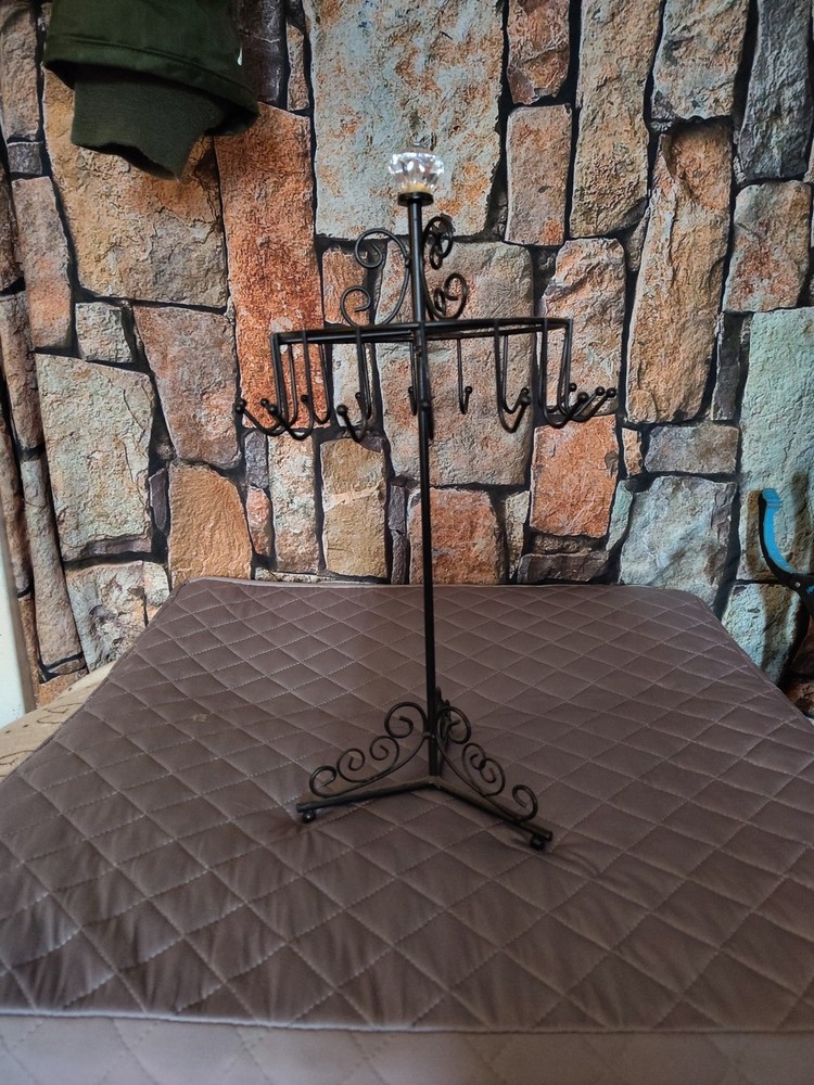 Pictures don't do this justice, it is new with a decorative topper and is free from scuffs and sits on table tops evenly. This rotating jewelry holder is the perfect addition to any tabletop retail store. Made of iron and featuring a gold color, this jewelry display rack is suitable for necklaces, bracelets, earrings, rings, and pendants. Measuring 16" x 7" , this holder is designed to organize and showcase your jewelry in a visually appealing way. The rack's rotating feature allows customers to easily view your entire collection from any angle. The jewelry holder comes with a display stand and is ideal for use in the jewelry & watches category. The holder's theme is jewelry organizer, making it a great choice for retailers who want to showcase their jewelry in a neat and orderly fashion. This product is made in China and is sure to impress your customers.
