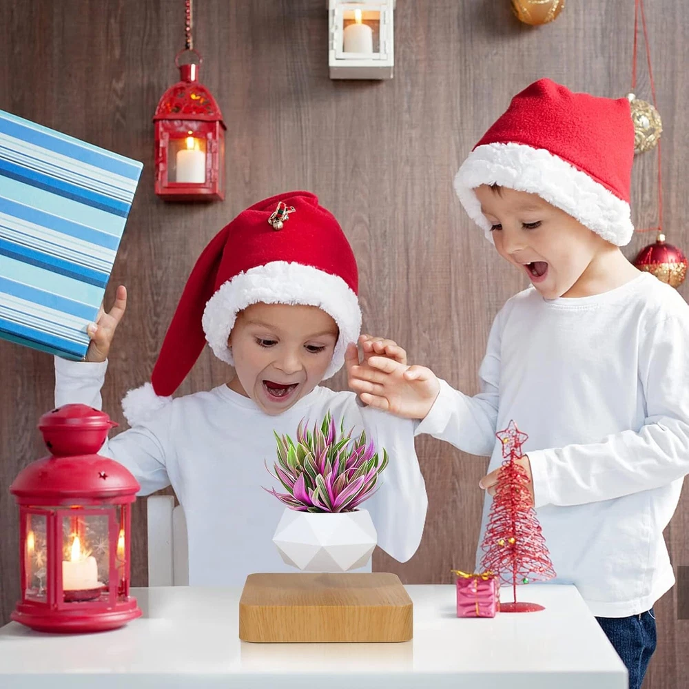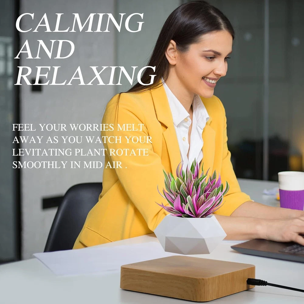Product Description ❤❤❤A UNIQUE DESIGN PIECE FOR ANY ROOM. Weivone People will notice and comment on this unique decoration that appears to defy gravity. Add a classy conversation piece to your life.❤❤❤ --Name: Imitation wood grain suspended polygon flower pot --Bearing capacity:0.66 lb --Base size:13.4x13.4x2.8cm/5.27x5.27x1.1inch --Flower pot size: diamater 9CM,height 5CM --Power Supply :12V1A --Net weight:2.2 lb --Color box size:17.8CM*17.8CM*12.4CM/7.01*7.01*4.88 Inch --Single outer box:19CM*19CM*14CM/7.48*7.48*5.51 inch NOTE: 1. Please try to grow the plant in the middle position of the flower pot during the planting. Do not exceed the maximum bearing capacity, otherwise it will shift or sink (The plant is not included.) 2. When you water the plant, don't spill the water to the base. Please wipe it dry promptly if it's spilled.