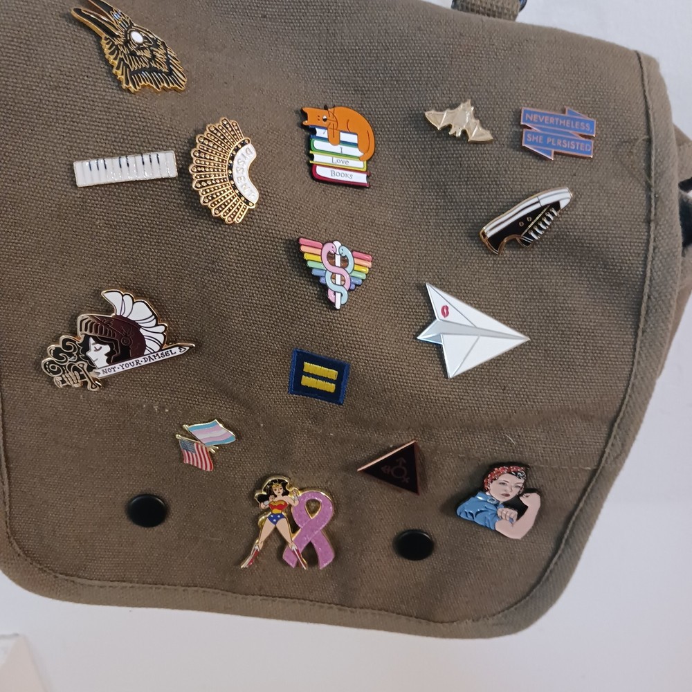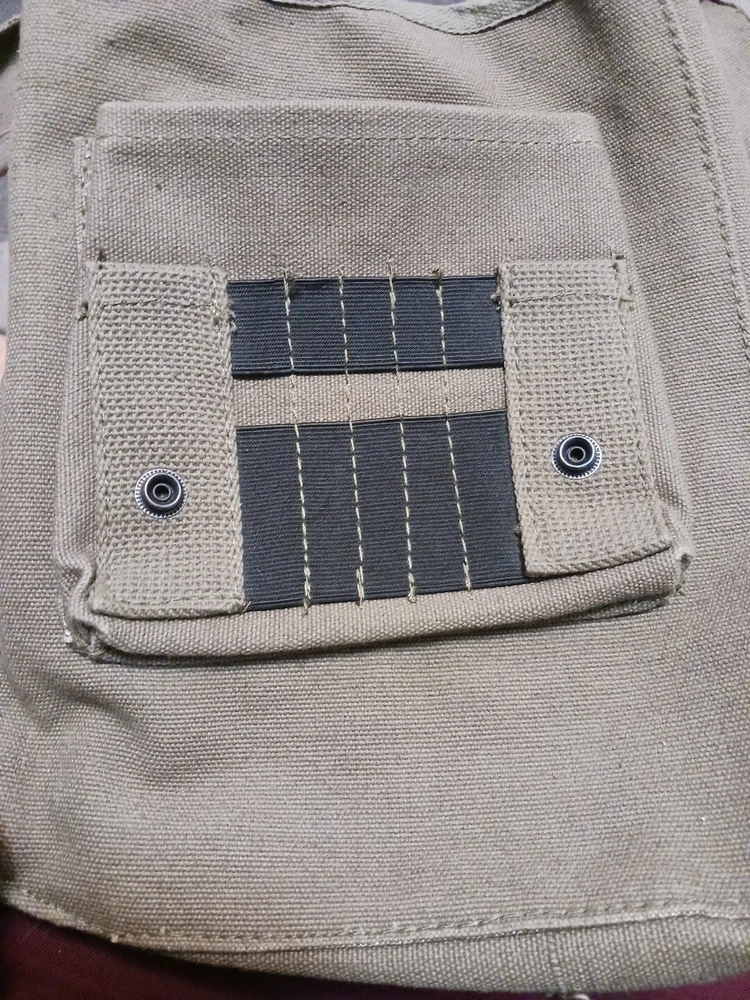 * loose thread on bottom (last pic) Smoke-free petfree Adjustable and removeable strap Two snap closure Outer pockets under flap Clean in and out Interior has 2 sections Dimensions 12" x 8.5" x 4.5" Best color description army green