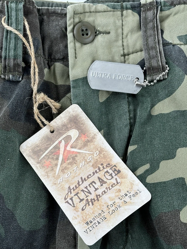 Rothco Infantry men’s Camo utility shorts drawstring in waist with button zip closure new with tags, 35x11