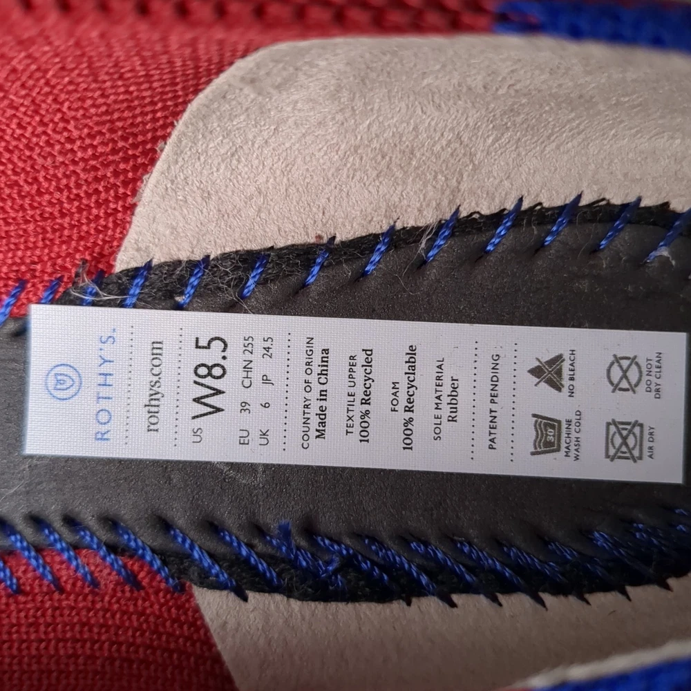 Insole Material: Foam Outsole Material: Rubber Features: Comfort Closure: Slip On UK Shoe Size: 6 Vintage: No Type: Flat Occasion: Casual Fabric Type: Knit UPC: Does Not Apply Color: Red Season: Spring Brand: Rothys US Shoe Size: 8.5 gtin13: Does Not Apply Pattern: Solid Style: Ballet Theme: Classic Lining Material: Textile Country/Region of Manufacture: China EU Shoe Size: 39 Customized: No Shoe Width: Standard Upper Material: Textile Department: Women Toe Shape: Pointed Toe