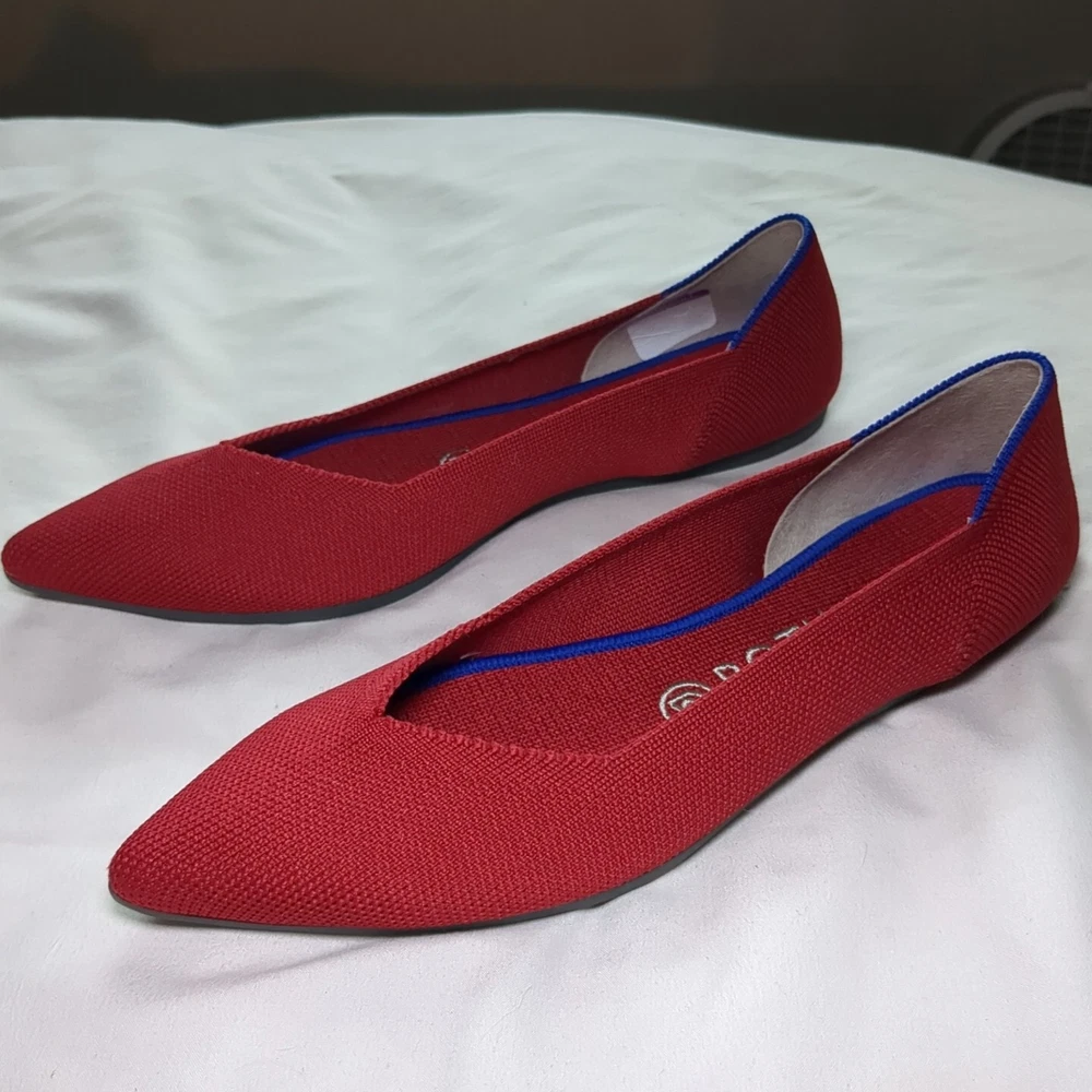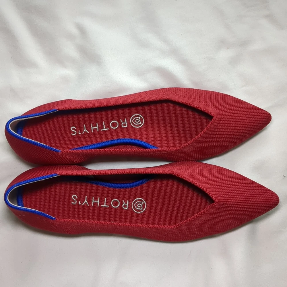 Rothys Red Recycled Knit Pointed Toe Comfort Slip-On Ballet Womens Flats 8.5