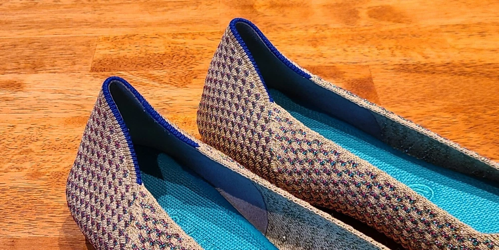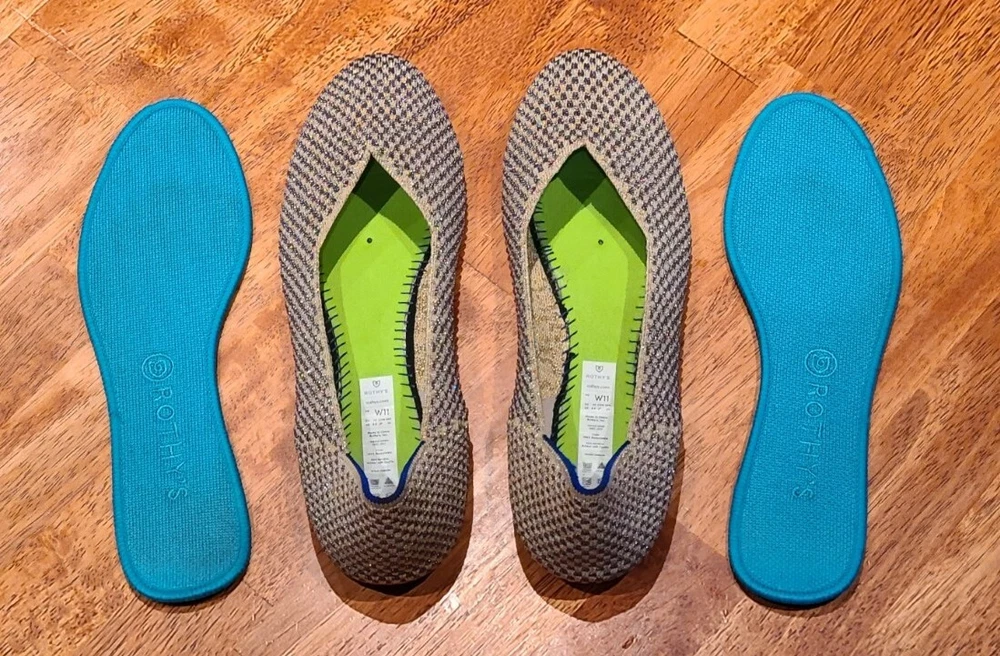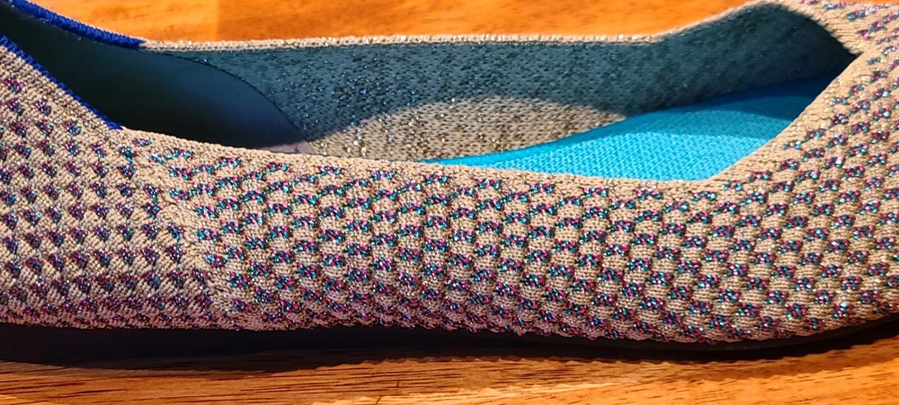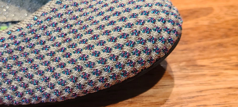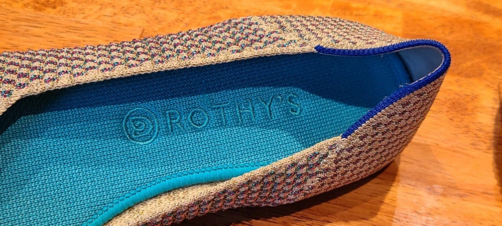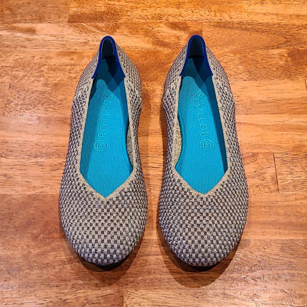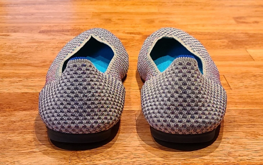 Preowned Rothy's Rounded Toe Flats Cyber Monday Holiday Limited Edition Multi Metallic Sparkling Slip-On Shoes. Size is 11. Shoes are in excellent condition. See photos.