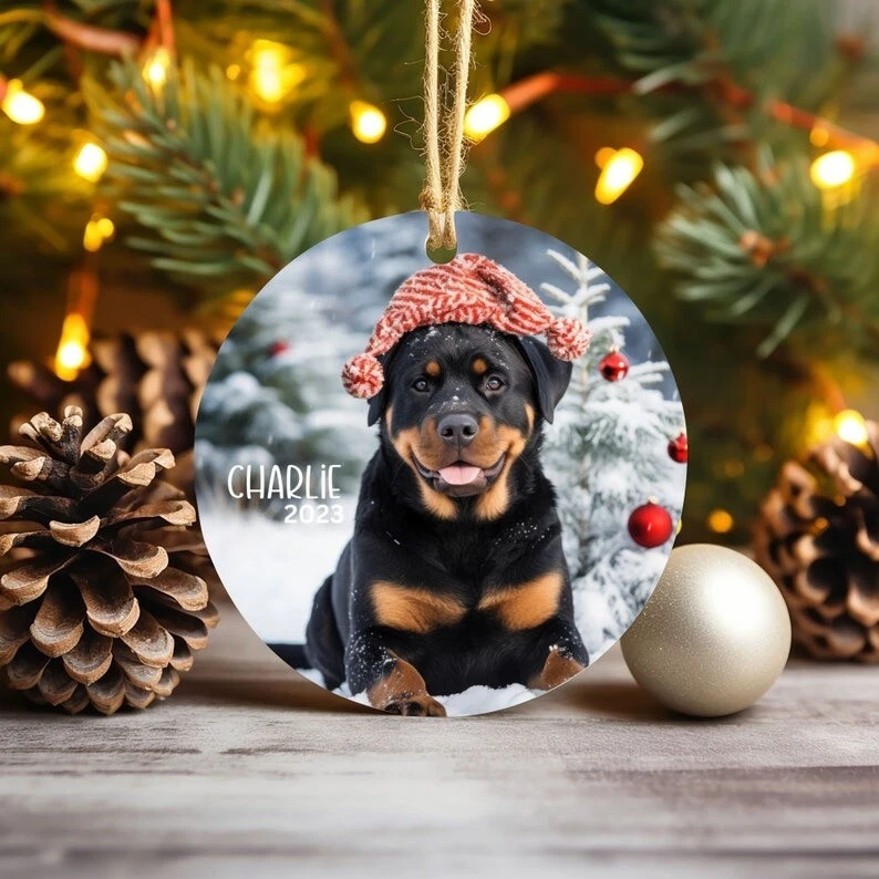Rottweiler Christmas Ornament, Custom Rottweiler Ornament, Personalized Rottw...