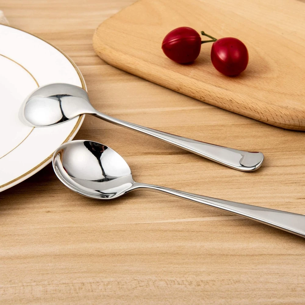 Store New Arrivals Add to Favorite View Feedback Contact Roud Soup Spoons SUS304 Stainless Steel Small Soup Spoons 6-Inch, Set of 4 Description Style Modern,Elegant,Simple Color Silver Material Stainless Steel Material Type Stainless Steel Item Weight 0.37 Pounds Style Name Modern,Elegant,Simple Is the item dishwasher safe? Yes Product Dimensions 6.14"L x 1.73"W Item Dimensions L x W 6.14"L x 1.73"W Material Type Free BPA Free Material: Our soup spoons are crafted from high-quality SUS304 stainless steel, ensuring durability and resistance to rust. With a sleek mirror finish, these spoons add a touch of elegance to your dining experience. Versatile Design: These soup spoons are perfect for various occasions. Whether you're enjoying a hot bowl of soup, indulging in ice cream, or scooping up chili or cereal, our multipurpose spoons have got you covered. Comfortable and Durable: The extra thick ergonomic handle provides a comfortable grip, ensuring that the spoon won't break, bend, or twist easily. Made to withstand everyday use, these small soup spoons are solid and durable for long-term enjoyment. Set of Four: Our soup spoon set includes four spoons, allowing you to conveniently serve your entire family or guests. The round mouthpiece of these spoons is just the right size, not too big for kids, making them perfect for family meals. Easy to Clean: These stainless steel soup spoons are dishwasher safe and easy to clean. Say goodbye to tedious handwashing and spend more time enjoying your delicious meals. Product Description Product Dimensions 6.14"L x 1.73"W Round soup spoons are regular size spoons with a round mouth piece perfect for soup. The size between a teaspoon & a tablespoon, perfect size for soup for the whole family - not too big for kids! Multi-function These stainless steel soup spoons are perfect for eating soups, ice cream, chili and cereal. Material Our soup spoons are made of food grade SUS304 stainless steel with a mirror finish. Dishwasher safe and easy to clean. Elegant Design The simple and elegant design blends with other utensils. Soup spoons have a round and smooth edge without sharp edges, perfect for everyday use. Comfortable Handle Extra thick ergonomics handle will not easy break, bend or twist. Solid and durable for long term use. ABOUT US We offer the best prices around on high quality products. Our E-store includes media such as books, movies, music and games while offering electronics, toys, sporting apparel, clothing, tools, general home, garden items and more. SHIPPING We are always working hard to ensure your package arrives as soon as possible. Please understand that some factors like weather, high postal traffic, and the performance of shipping companies are outside of our control. We offer free shipping to the lower 48 states and ship within 2 business days of payment, usually sooner. We do not accept P.O. Boxes. Please provide a physical address. For shipping outside of the continental USA, we only use eBay's Global Shipping Program.The item is shipped to KY and then sent to the rest of the world. International customers are responsible for all duties and taxes. Continue to check out in order to calculate costs for shipping the item to your country. Messages regarding eBay's Global Shipping Program MUST be directed at eBay EXCLUSIVELY. RETURNS We offer a 30-Day Return Policy on items which you are not completely satisfied with. You have the option for a full-refund or an exchange of the item. No returns are available on items shipped outside of the USA. PAYMENT We accept PayPal. CONTACT US This page content is yet to come Please ad us to your favorite seller and visit again later Thank You CUSTOMER SATISFACTION We try our very best to make sure every customer is completely satisfied. If there's a problem, message us! We're happy to help. WE ACCEPT Copyright © 2021 AutoDS. | All Rights Reserved