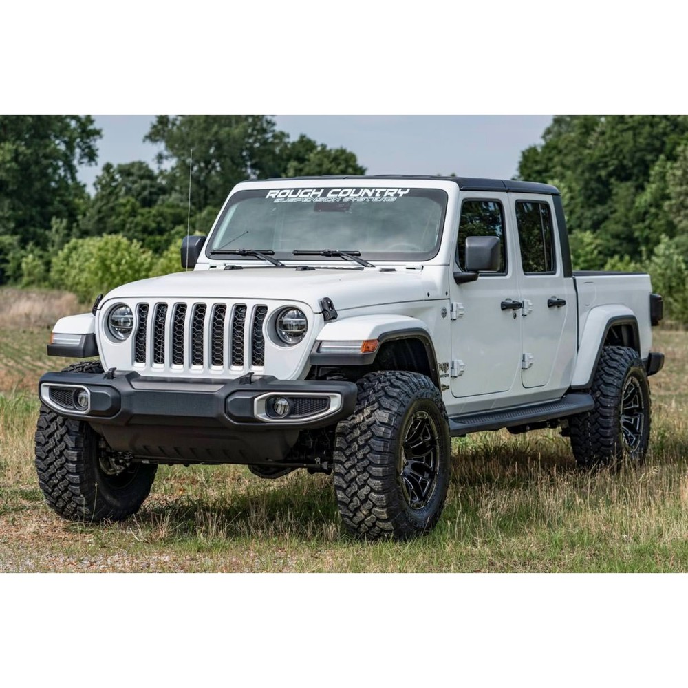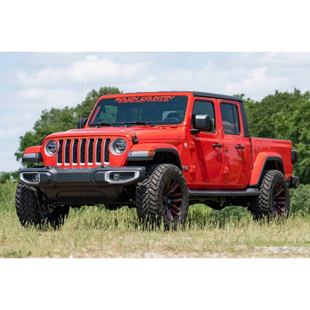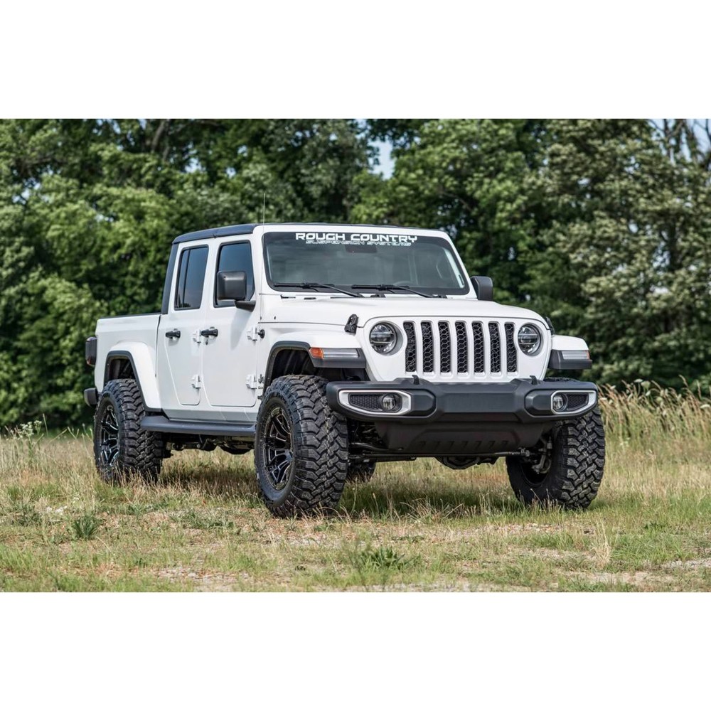 https://ebaystores.s3.dualstack.us-east-2.amazonaws.com/trendsauto/Rough-Country/ROUGHCOUNTRY-64830B-1.jpg BRAND NEW IN THE BOX! Includes Limited Lifetime Warranty! This 2.5" Leveling Kit w/Premium N3 Shocks is for your 20-23 Jeep Gladiator 4WD (see compatability chart). Upgrade your stance with confidence and transform your Gladiator with Rough Country's 2.5" Coil Spring Suspension Lift Kit. This all-in-one lift solution delivers aggressive good looks, clearance for up to 35" tires, and maintains factory ride comfort thanks to precision-tuned, application-specific coil springs. With increased ground clearance and upgraded suspension geometry, you can tackle uneven terrain and everyday obstacles with ease. Sway bar links and bump stops are included to ensure safe, predictable handling in all conditions. TrendsAuto always offers you FREE shipping. Check out the full description for more details. rough country, lift kit, 2.5 inch lift kit, 2.5" lift kit, leveling kit, 2.5" leveling kit Rough Country 2.5" Leveling Kit w/Premium N3 Shocks for 20-23 Jeep Gladiator 4WD PART NUMBER: 64830B BRAND: Rough Country DESCRIPTION 2.5 Inch Leveling Kit Shock Series: Premium N3 Upgrade your stance with confidence and transform your Jeep Gladiator with Rough Country's 2.5-Inch Coil Spring Suspension Lift Kit. This all-in-one lift solution delivers aggressive good looks, clearance for up to 35-inch tires, and maintains factory ride comfort thanks to precision-tuned, application-specific coil springs. Ride Quality You Can Trust: Unlike typical lift kits, this system is carefully engineered to preserve the OEM driving feel. The included coil springs and premium components work together to deliver a smooth, stable ride that's ready for the road or trail. Built for Bigger Adventures: With increased ground clearance and upgraded suspension geometry, you can tackle uneven terrain and everyday obstacles with ease. Sway bar links and bump stops are included to ensure safe, predictable handling in all conditions. Sinple Bolt-On Installation: Enjoy a 100% bolt-on design that requires no cutting or welding, making installation fast and frustration-free. Backed by Rough Country's Lifetime Replacement Warranty, this kit is built for long-term performance and peace of mind. Kit Features: Hassle-Free Installation: Easy bolt-on design allows for a quick, straightforward setup with no cutting or welding required. Factory Ride Quality Maintained: Engineered with application-specific coil springs to deliver a smooth, OEM-like ride even after lifting. Enhanced Ground Clearance: Gain additional underbody space to conquer rough terrain and everyday obstacles with ease. Fit Larger Tires with Confidence: Clears up to 35" tires, giving your vehicle a more aggressive stance and improved off-road capability. Precision-Tuned Coil Springs: Custom-designed for your application to maintain optimal ride comfort and suspension geometry. Premium N3 Shock Features: 10-Stage Variable Valving High Pressure Nitrogen Charged 35mm Piston Chromed Hardened 18mm Piston Rod 54mm Shock Body to dissipate heat faster 36kN Tensile Strength Spring Loaded Piston Rod Seal Military Spec. Fluid Rated To -40° C Rubber bushings for better absorption Metallic Silver Paint 3-year Manufacturer's Warranty Wheels & Tires *Tire & wheel combinations should be test fit prior to installation Size Wheel Bolt Pattern Wheel Offset Note Stance 35x12.50R17 *Popular 17x9 5x5.0 0 - Moderate 35x12.50R18 *Popular 18x9 5x5.0 0 - Moderate 35x12.50R20 *Popular 20x9 5x5.0 0 - Moderate 35x12.50R17 Factory 17 5x5.0 - - Mild 35x12.50R18 Factory 18 5x5.0 - - Mild 305/70R17 17x8.5 5x5.0 0 - Moderate 305/70R17 17x8.5 5x5.0 1 - Moderate 35x12.50R17 17x8.5 5x5.0 0 - Moderate 35x12.50R17 17x8.5 5x5.0 1 - Moderate 285/75R17 17x9 5x5.0 0 - Moderate 285/75R17 17x9 5x5.0 1 - Moderate 305/70R17 17x9 5x5.0 0 - Moderate 305/70R17 17x9 5x5.0 1 - Moderate 305/70R17 17x9 5x5.0 -12 - Moderate 315/70R17 17x9 5x5.0 0 - Moderate 315/70R17 17x9 5x5.0 1 - Moderate 35x12.50R17 17x9 5x5.0 1 - Moderate 35x12.50R17 17x9 5x5.0 -12 - Moderate 295/70R18 18x10 5x5.0 -18 - Moderate 295/70R18 18x10 5x5.0 -19 - Moderate 35x12.50R18 18x10 5x5.0 -18 - Moderate 35x12.50R18 18x10 5x5.0 -19 - Moderate 285/75R18 18x8.5 5x5.0 0 - Moderate 285/75R18 18x8.5 5x5.0 1 - Moderate 295/70R18 18x8.5 5x5.0 0 - Moderate 295/70R18 18x8.5 5x5.0 1 - Moderate 35x12.50R18 18x8.5 5x5.0 0 - Moderate 35x12.50R18 18x8.5 5x5.0 1 - Moderate 285/75R18 18x9 5x5.0 -12 - Moderate 295/70R18 18x9 5x5.0 0 - Moderate 295/70R18 18x9 5x5.0 1 - Moderate 295/70R18 18x9 5x5.0 -12 - Moderate 35x12.50R18 18x9 5x5.0 1 - Moderate 35x12.50R18 18x9 5x5.0 -12 - Moderate 295/60R20 20x10 5x5.0 -18 Minor Trimming Moderate 295/60R20 20x10 5x5.0 -19 Minor Trimming Moderate 295/60R20 20x10 5x5.0 -25 - Moderate 295/65R20 20x10 5x5.0 -25 - Moderate 35x11.50R20 20x10 5x5.0 -25 - Moderate 35x12.50R20 20x10 5x5.0 -18 Minor Trimming Moderate 35x12.50R20 20x10 5x5.0 -19 Minor Trimming Moderate 35x12.50R20 20x10 5x5.0 -25 - Wide 295/60R20 20x9 5x5.0 0 - Moderate 295/60R20 20x9 5x5.0 1 - Moderate 295/60R20 20x9 5x5.0 -12 - Moderate 35x12.50R20 20x9 5x5.0 1 - Moderate 35x12.50R20 20x9 5x5.0 -12 - Moderate 35x12.50R22 22x12 5x5.0 -44 Trimming Required Wide VEHICLE COMPATIBILITY 2020-2023 Jeep Gladiator 4WD NOTE: - Due to variances in motor weight this kit does NOT fit models equipped with a 3.0L EcoDiesel V6 motor. - Does NOT fit Mojave models equipped with FOX 2.5 shocks, which use a larger shock bolt incompatible with the replacement shocks. - 35" tires will clear but may rub during extreme articulation. If running 35" tires on factory wheels, verify clearance between the front tire, lower control arm, and sway-bar links.