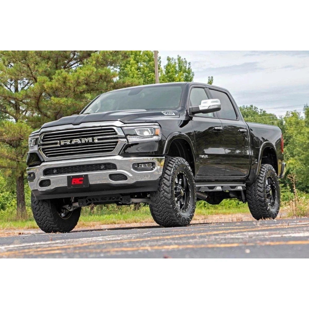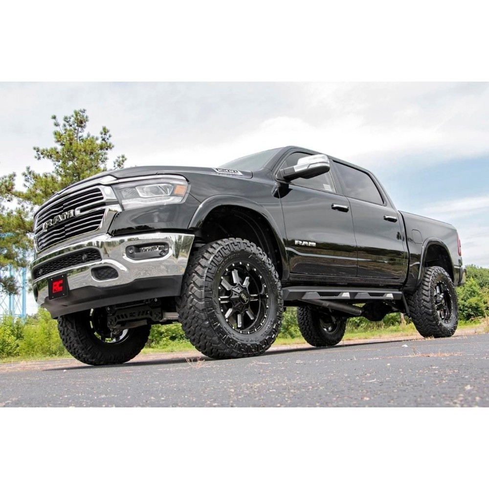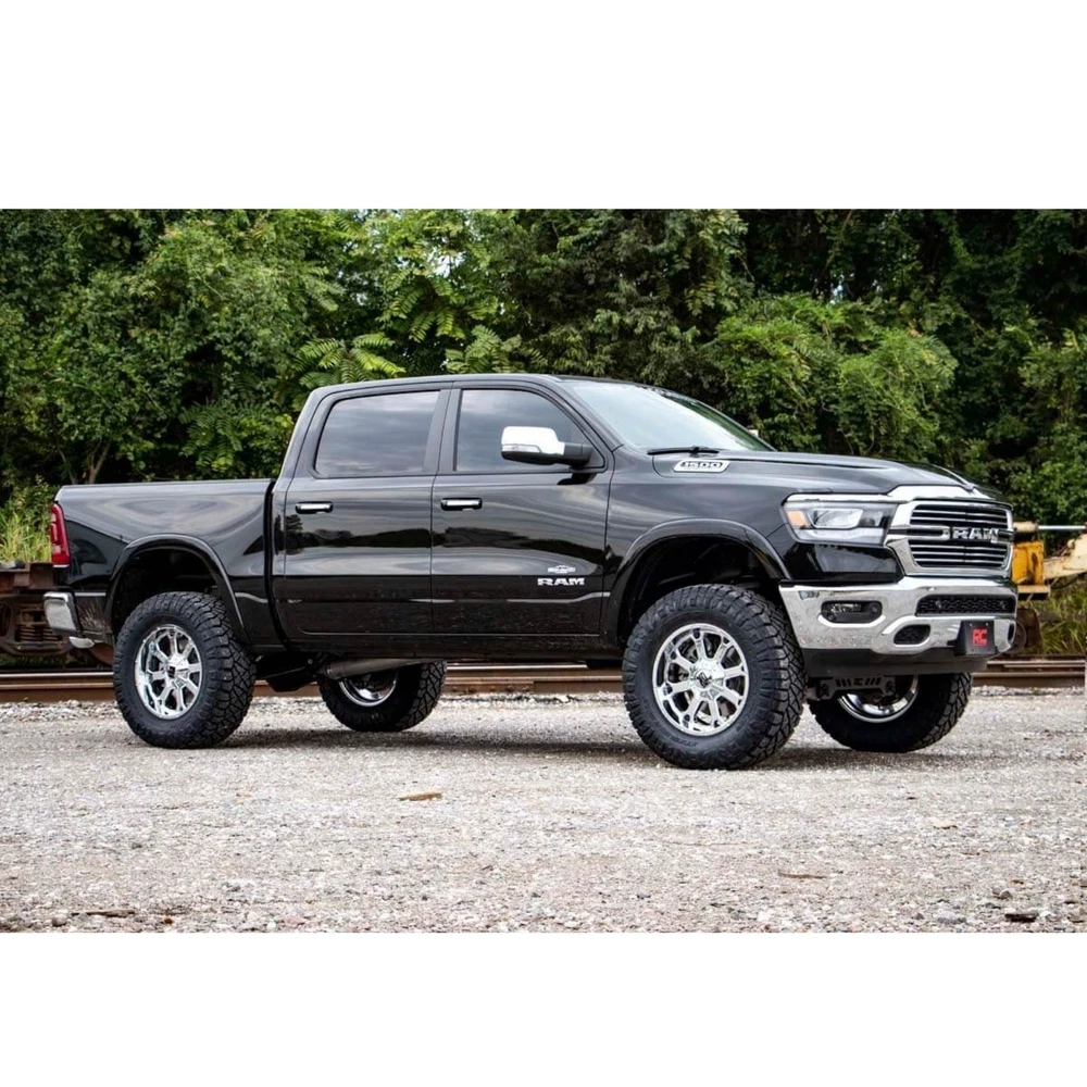 https://ebaystores.s3.dualstack.us-east-2.amazonaws.com/trendsauto/Rough-Country/ROUGHCOUNTRY-33431-1.jpg BRAND NEW IN THE BOX! Includes Limited Lifetime Warranty! This 6" Lift Kit w/ N3 Struts w/ N3 Rear Shocks is for your 2019-2024 Ram 1500 4WD (see compatability chart). Transform your 5th gen RAM 1500 into an unstoppable off-road BEAST with Rough Country's complete 6in Lift Kit. This system delivers an aggressive, commanding stance that perfectly complements your truck's rugged new design. Experience the same comfortable & controlled driving feel you love. Rough Country's kit maintains a smooth factory-like ride quality so every journey, on-road or off, is just as comfortable as before. The 6-inch lift lets you run up to massive 35-inch tires for a bold look & enhanced off-road capability. TrendsAuto always offers you FREE shipping. Check out the full description for more details. rough country, 6" lift kit, 6 inch lift kit, lift kit 6 inch, rough country 6 inch lift kit, rough country lift kit 6 inch, lift kit Rough Country 6" Lift Kit w/ N3 Struts w/ N3 Rear Shocks for 19-24 Ram 1500 4WD PART NUMBER: 33431 BRAND: Rough Country DESCRIPTION 6.0 Inch Lift Kit Model Type: Without 22in Factory Wheels Kit Configuration: N3 Struts w/ N3 Rear Shocks Transform your 5th generation RAM 1500 into an unstoppable off-road BEAST with Rough Country's complete 6in Suspension Lift Kit. This all-inclusive system delivers an aggressive, commanding stance that perfectly complements your truck's rugged new design. Preserve Your Smooth Factory Ride: Experience the same comfortable and controlled driving feel you love. Rough Country's kit maintains a smooth factory-like ride quality so every journey, on-road or off, is just as comfortable as before. Boost Your Ground Clearance for Ultimate Off-Road Confidence: Gain plenty of added clearance to tackle the toughest trails and obstacles with ease. The 6-inch lift lets you run up to massive 35-inch tires for a bold look and enhanced off-road capability. Achieve a Balanced, Aggressive Stance: Level your RAM's front and rear for a sleek, aggressive profile that turns heads everywhere you go. The kit includes precision-engineered front and rear crossmembers, each laser-cut with the iconic RC logo for a fierce yet streamlined appearance. Enhanced Steering and Fitment: An upgraded outer tie-rod reduces bump steer and optimizes turning precision. Plus, it allows you to fit a wider variety of wheels without compromise. Clean Installation with Long-Term Durability: All components are designed with drop brackets and proper geometry to keep your truck looking sharp and functioning flawlessly, no loose parts or unsightly hangers. Backed by Rough Country's Limited Lifetime Replacement Guarantee, this kit is built to last. Upgrade your RAM 1500 with Rough Country's 6in Suspension Lift Kit, dominate the trails, look the part, and drive like a champion every mile of the way. Features: Preserves Smooth Factory Ride: Enjoy the same comfortable and controlled driving experience. Boosts Ground Clearance: Tackle rough terrain and obstacles with added confidence. Achieves a Balanced Stance: Levels the front and rear for a sleek, aggressive look. Limited Lifetime warranty Wheels & Tires Size Wheel Bolt Pattern Wheel Offset Note Stance 35x12.50R20 - Popular 20x9 6x5.5 0 - Moderate 295/60R20 20x10 6x5.5 -18 Minor Trimming Moderate 295/60R20 20x10 6x5.5 -19 Minor Trimming Moderate 295/60R20 20x10 6x5.5 -25 Minor Trimming Moderate 35x12.50R20 20x10 6x5.5 -18 Minor Trimming Moderate 35x12.50R20 20x10 6x5.5 -19 Minor Trimming Moderate 35x12.50R20 20x10 6x5.5 -25 Minor Trimming Moderate 35x12.50R20 20x12 6x5.5 -44 Trimming Required Wide 295/60R20 20x9 6x5.5 0 - Mild 295/60R20 20x9 6x5.5 1 - Mild 295/60R20 20x9 6x5.5 -12 - Moderate 35x12.50R20 20x9 6x5.5 1 - Moderate 35x12.50R20 20x9 6x5.5 -12 - Moderate 285/55R22 22x10 6x5.5 -18 - Moderate 285/55R22 22x10 6x5.5 -19 - Moderate 285/55R22 22x10 6x5.5 -25 - Moderate 35x12.50R22 22x10 6x5.5 -18 Minor Trimming Moderate 35x12.50R22 22x10 6x5.5 -19 Minor Trimming Moderate 35x12.50R22 22x10 6x5.5 -25 Minor Trimming Moderate 35x12.50R22 22x12 6x5.5 -44 Trimming Required Wide VEHICLE COMPATIBILITY 2019-2024 Ram 1500 4WD NOTE: - Kit includes: N3 Struts w/ N3 Rear Shocks - Model Type: Without 22in Factory Wheels - Requires 20" or larger wheels! Does NOT fit 18" or smaller wheels. - Does NOT fit 2019-2024 1500 Classic models. - Does NOT fit models with 4-Corner Air-Suspension found standard on Limited and Limited Longhorn models. This package is an available upgrade across multiple sub-models. - Does NOT fit TRX models as they are equipped with a long-travel suspension and Bilstein Black Hawk e2 adaptive performance shocks. - This kit is NOT recommended for AWD models due to pinion angle issues, which cause drivetrain vibrations. - This kit DOES fit Rebel models!