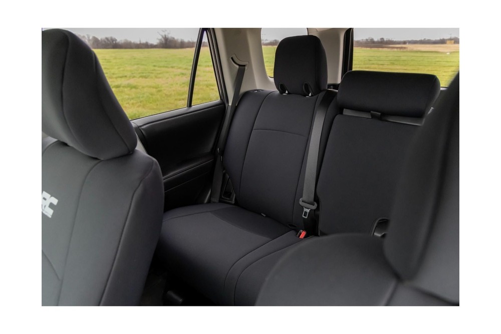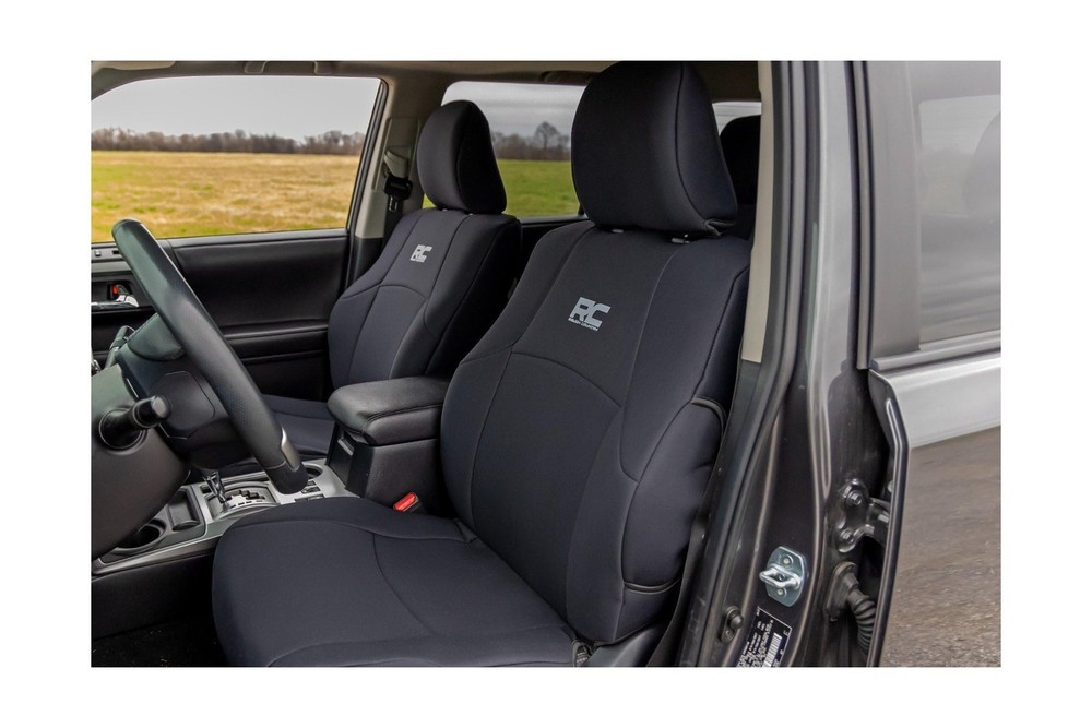 {{title} Rough Country Neoprene Front Seat Covers for Toyota 4Runner (2011-2024) - Waterproof & UV Resistant, Foam Padded, Front & Rear Seat Cover Set Description Want to protect your seats or are your seats showing signs of wear and tear from daily use? Say goodbye to unsightly stains and deterioration with Rough Country's Neoprene Seat Covers - the ultimate solution for preserving your vehicle's interior.Snug Fit for Optimal Protection: Our seat covers are tailored to fit your seats perfectly, providing a protective barrier against spills, scratches, and everyday wear and tear. Each cover is designed to be an exact fit on your vehicle, with accessibility for airbags, seat adjustment, and more!Factory-Spec Construction: Engineered to meet factory specifications, our covers blend seamlessly with your vehicle's interior, giving it a fresh, new look without compromising on quality or style.Four-Layer Defense: With a four-layer construction featuring foam padding and a durable polyester shell, our seat covers offer unmatched protection and longevity, ensuring your seats stay looking new for years to come.Breathable and Water-Resistant: The neoprene layer not only provides breathability for added comfort but also boasts water-resistant properties, safeguarding your seats from spills and stains.Complete Coverage: Our covers come with full protection for your front seats, including headrest and center console covers where applicable for complete protection.Peace of Mind Warranty: Rest easy knowing your purchase is backed by our two-year warranty, giving you confidence in the durability and reliability of our product.Don't let worn-out seats diminish your driving experience. Upgrade to Neoprene Seat Covers today and enjoy a fresh, stylish interior that's protected against the rigors of daily life on the road. Features: Protect Your Seats with a Perfect Fit: Tailored specifically for 2011-2024 Toyota 4Runner, these neoprene seat covers deliver a snug, secure fit that shields against spills, scratches, and daily wear, keeping your interior pristine. Ultimate Durability with 4-Layer Defense: Experience long-lasting protection with a four-layer build comprising of foam padding, protective polyester, and water-resistant neoprene, ensuring your seats stay looking new for years. Stylish Factory Fit for a Seamless Look: Designed to match factory specifications, these seat covers blend effortlessly with your trucks interior, offering a fresh, stylish upgrade without compromising quality or comfort. Comfort Meets Protection: Breathable neoprene material enhances driving comfort while its water-resistant properties safeguard your seats from stains, spills, and messes caused by kids, pets, or everyday wear. Complete Coverage and Peace of Mind: Includes full front and rear seat protection with headrest covers where applicable. Backed by a 2-year warranty, you can drive confidently knowing your interior is protected for life on the road. Product Details: Fit Type: Custom Fit Brand: Rough Country Color: Black Material: Neoprene Auto Part Position: Front Special Feature: Breathable Neoprene, Foam Padded, Machine Washable, Snug Fit, Water Resistant Set Name: Front and Rear Seat Cover Set UPC Seat Cover Protection Level: High Seat Cover Placement: Front and Rear Fit Type: Custom Fit Brand: Rough Country Color: Black Special Feature: Breathable Neoprene, Foam Padded, Machine Washable, Snug Fit, Water Resistant Set Name: Front and Rear Seat Cover Set UPC: 840269925122 Seat Cover Protection Level: High Seat Cover Placement: Front and Rear Target Audience: Men, Off-Road, Truck Owner, Women Vehicle Model: Toyota 4Runner Manufacturer: Rough Country Recommended Uses For Product: Off-Road Seats, Suv Has Seat Belt Accessibility: Yes Automotive Fit Type: Vehicle Specific Fit Model: Rough Country Neoprene Seat Cover Set for 2011-2022 Toyota 4Runner - 91053 Item Weight: 12.27 pounds Product Dimensions: 27.6 x 20.9 x 9.6 inches Item model number: 91053 Manufacturer Part Number: 91053 Special Features: Breathable Neoprene, Foam Padded, Machine Washable, Snug Fit, Water Resistant Construction: Drilling Required: No Date First Available: May 22, 2023 Delivery We Do Not Ship Outside of the Continental US. Return Policy All items qualify for returns within 30 days of receipt. Buyer is responsible for return shipping on any item that is not damaged. Feedback We take our reputation seriously, we buy and sell online, so we understand the value of trust. If you are unsatisfied with your order, please contact us and we will work with you to resolve it to your satisfaction. Delivery We Do Not Ship Outside of the Continental US. Return Policy All items qualify for returns within 30 days of receipt. Buyer is responsible for return shipping on any item that is not damaged. Feedback We take our reputation seriously, we buy and sell online, so we understand the value of trust. If you are unsatisfied with your order, please contact us and we will work with you to resolve it to your satisfaction.