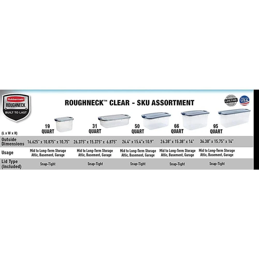 Made with break-resistant material Snap-fit lid protects contents from dust, insects and moisture Designed with recessed lid to easily stack storage bins|The Roughneck Clear 66 Qt tote can be used for all essential home storage and organization. These plastic bins come with latching lids that keep your contents secure and are ideal for moving. Take them from a storage unit to home, a dorm room, closet, pantry, attic and more. The clear base makes it so you can easily find what you need. This is great for anything that needs to be stored away, such as for kids' toys, clothing, seasonal decorations or sporting equipment. Made with high quality impact resistant polypropylene, these totes are built for stacking and year-round heavy storage. Dimensions: 26.4 in.... Lumiskin Roughneck 66 Qt/16.5 Gal Stackable Storage Containers, Clear W/Latching Grey Lids, 4-Pack Made with break-resistant material Snap-fit lid protects contents from dust, insects and moisture Designed with recessed lid to easily stack storage bins|The Roughneck Clear 66 Qt tote can be used for all essential home storage and organization. These plastic bins come with latching lids that keep your contents secure and are ideal for moving. Take them from a storage unit to home, a dorm room, closet, pantry, attic and more. The clear base makes it so you can easily find what you need. This is great for anything that needs to be stored away, such as for kids' toys, clothing, seasonal decorations or sporting equipment. Made with high quality impact resistant polypropylene, these totes are built for stacking and year-round heavy storage. Dimensions: 26.4 in. L x 15.4 in. W x 14.0 in. H.|Break-Resistant Material - With the strength and durability of a Roughneck tote, these clear totes are made with high quality impact resistant polypropylene. These plastic storage bins also work great as moving totes or garage storage bins Snap-Fit Lid - Secure your contents with the Roughneck snap-fit lid and protect your contents from dust, insects and moisture. The design of the lid allows for stacking and keeps your valuables safe from damage. Everyday Heavy Storage - These organization and storage bins are built for use year-round. Store away heavy winter gear, utilize for pantry organization and storage, laundry room organization, office organization or pack away holiday decorations. Clear Base - Makes organizing and finding contents easy. The clear base is great for kitchen, bathroom or pantry storage. Use containers throughout your home for light or heavy-duty storage and organization needs. Stackable Storage Bins - The recessed lid construction ensures stability and allows plastic storage bins to stack securely for ease of moving, efficient use of space, traveling and more. These storage bins with lids can maximize any space If you have any questions, please feel free to contact our customer service specialists through the eBay site. We will solve your problems quickly and professionally! Item Specifics Brand Unbranded Type Storage Bins Item Length 26.5 in Item Width 15.73 in Item Height 13.869 in Model RMRC066004 Color Family Clear Color/Finish Clear and Grey Lid Color Gray Lid/Top Mechanism Detached Material Plastic Pack Size 4 Shape Rectangle Storage Capacity 66 qt Storage Features Built-in Handles,Includes Top,Nestable,Stackabl Storage Product Type Storage Bins and Totes Weight Capacity (lb.) 96 lb Product Depth (in.) 26.5 in Product Height (in.) 13.869 in Product Width (in.) 15.73 in Payment We accept PayPal payment,PayPal Credit,Credit card or debit card and so on. Payment should be completed within 4 (Four) days of auction closing. Or unpaid dispute will be filed for closing auction. We will leave a positive feedback immediately after payment is received. We appreciate a positive feedback as much as you do. If for some reason there is any issue with the purchase, please contact us prior to leaving feedback, we will be glad to work together and provide a satisfying solution. Shipping 1.We usually ship within 3-5 business days of receiving cleared payment., and we provide Free Shipping for most items. 2.Fast shipping is very important for us. We use multiple fulfilment warehouse around the United States. We only ship to the lower 48 States and do not ship to PO Boxes. 3.Please make sure the correct Ship-To address is entered before checking out. Once the payment is completed, you may not be able to change the shipping address. We shall not be held responsible for any wrong or undeliverable addresses. Returns 1.We provide 14 days return upon the buyer received the item. It must be in good condition and you will undertake the returned shipping cost. 2.We will offer replacement or refund for all DEFECTIVE items (not including damage resulting from accidents / abuse / misuse / improper care), but a photo is needed for our reference beforehand and should be reported to us within 7 days from purchase date. 3.All items are brand new and have been passed the quality check. All are packed in a good condition before item dispatch. Contact Us 1.Dear customers, we appreciate your business, our aim is to provide Top Level Customer Service,if you are satisfied with our service, please leave us a 5 star positive feedback . 2.If you have any question or concern about your eBay order, please feel free to let us know. We will try our best to reply all questions within 24 hours. However, no answer will be replied during weekends or holidays. Please allow up to 48 hours delay in receiving our response after long weekends or holidays. 3.Please via eBay Message for a solution for resolutions before leaving negative feedback, we strive to providing the greatest service and bringing the highest satisfaction to all of our customers. Lumiskin DESCRIPTION PAYMENT SHIPPING RETURN POLICY CONTACT US Shop Category Store Home Other Hot Item 48" X 250Ft. 1000 Sq. Ft. Synthetic Roofing Underlayment USD 87.46 Mini Portable Pocket Fan - Battery Powered Personal Handheld Fan,