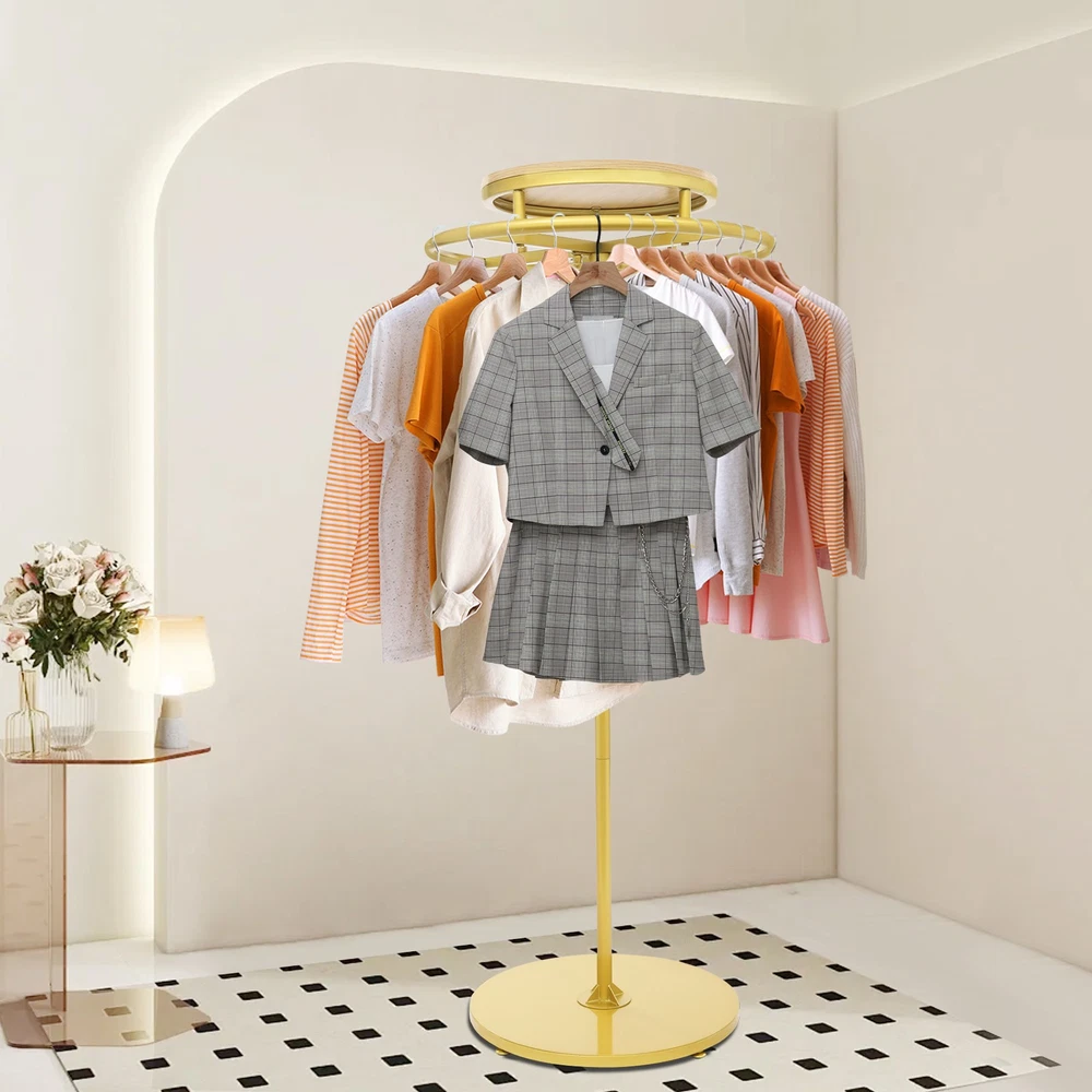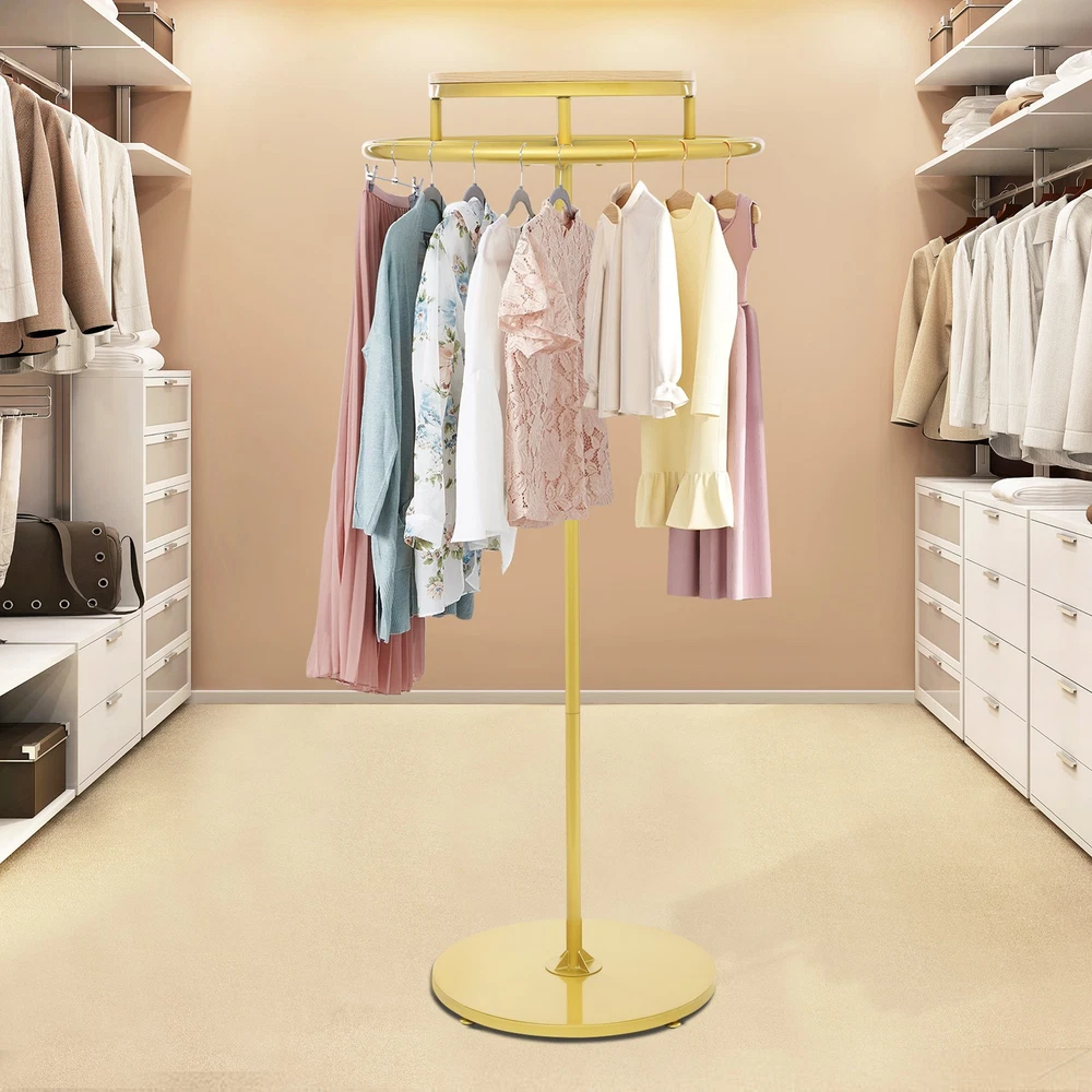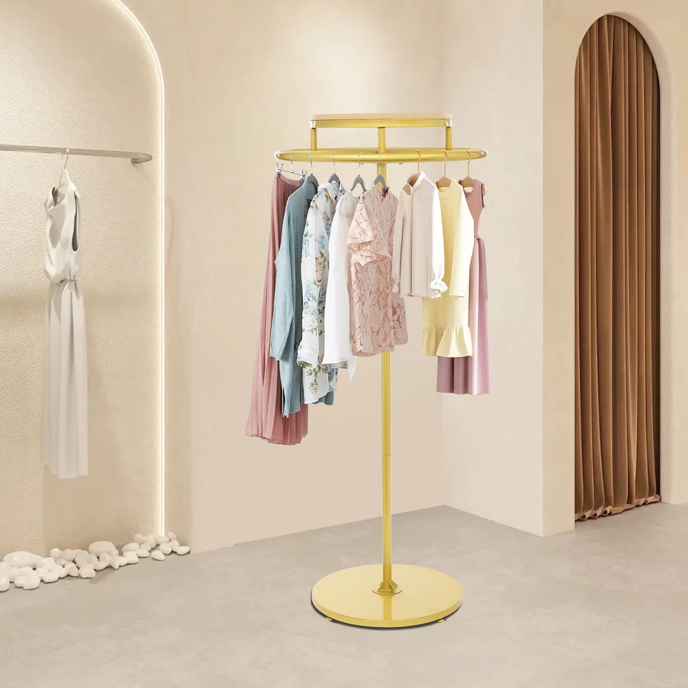 Round Clothing Rack Floor Standing Clothes Hanging Rack Garment Display