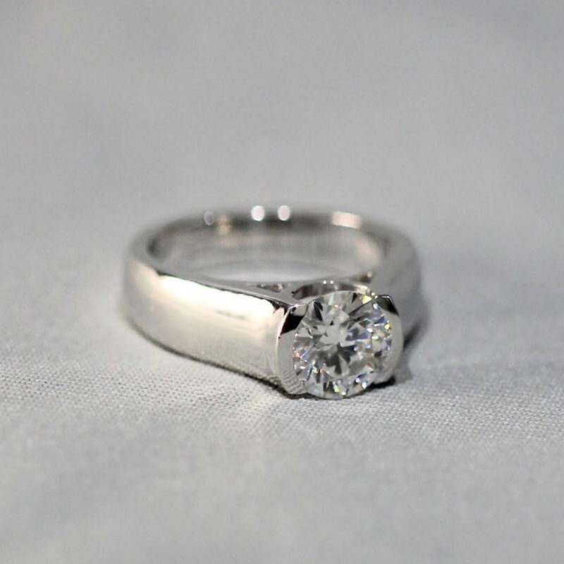 $ 157.887ctw Round Cut Moissanite 14K White Gold Men's Engagement Band Ring