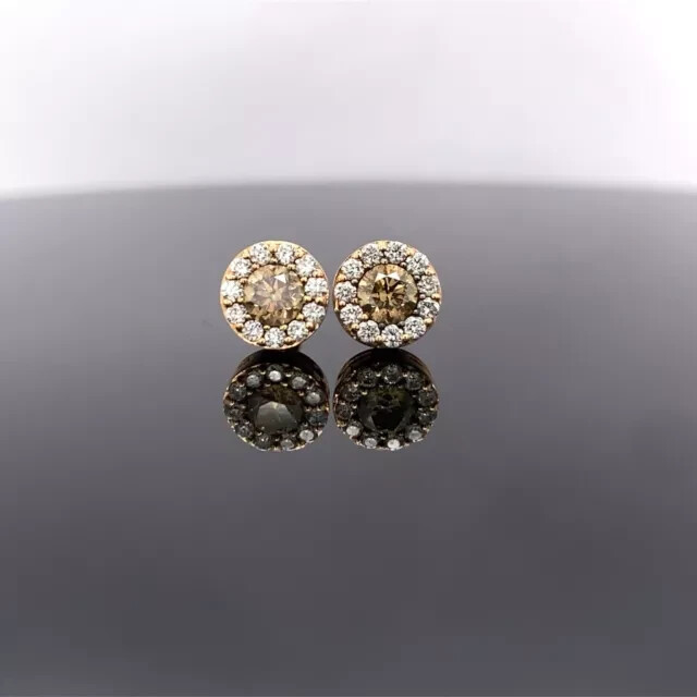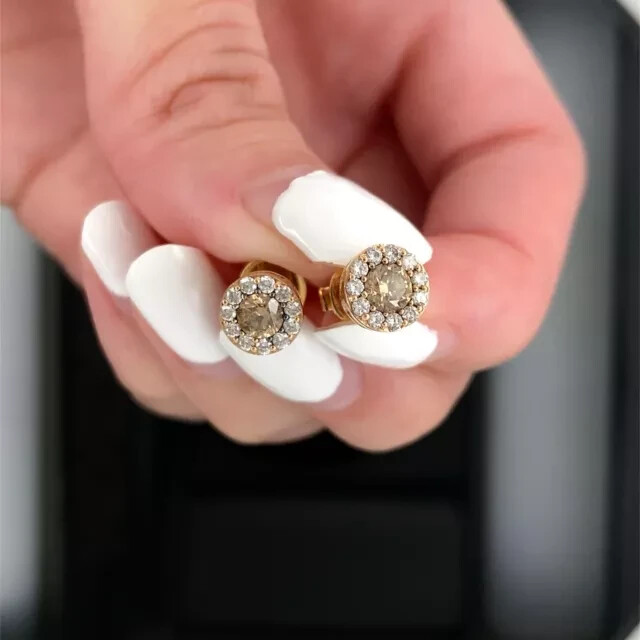 Round Cut Simulated Brown Diamond Unisex Xmas Stud in 14K Gold