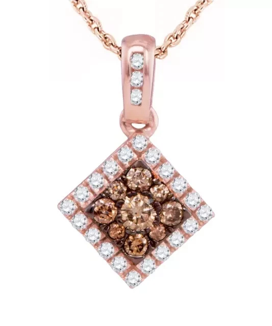 Round Cut Simulated Brown Diamond Women Pendant 14K Rose Gold Plated with Chain