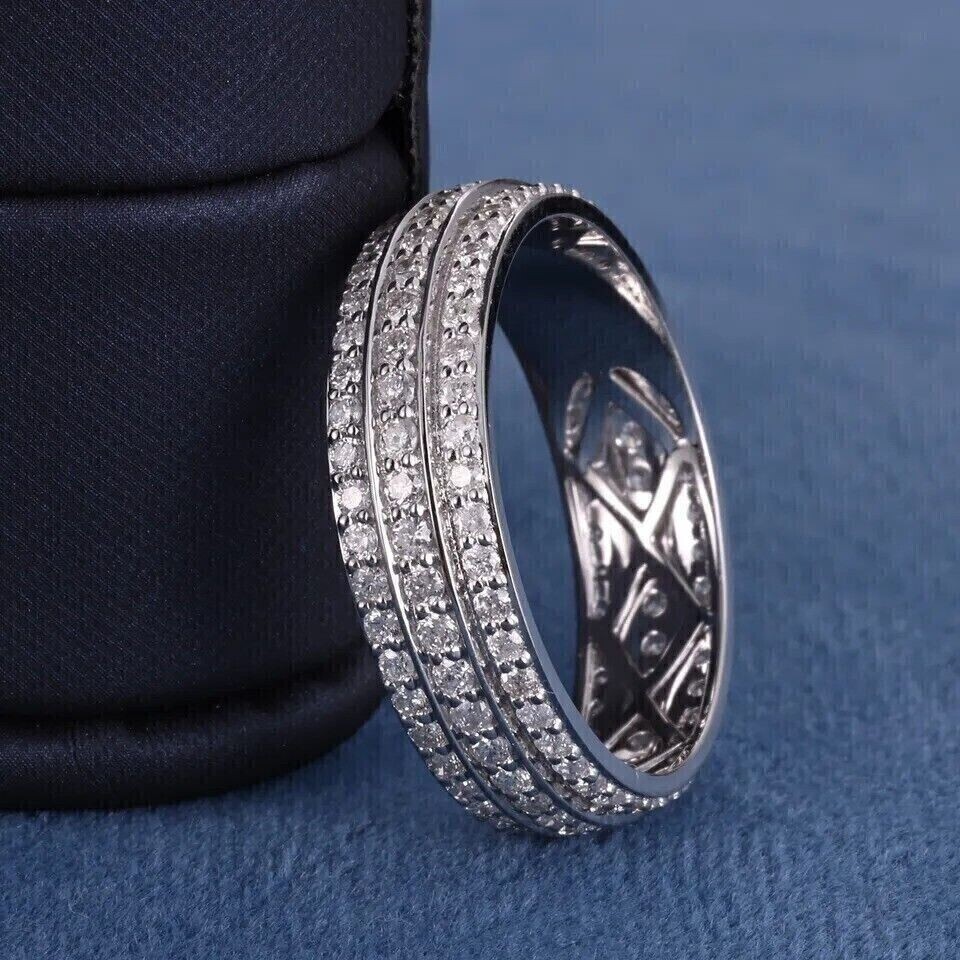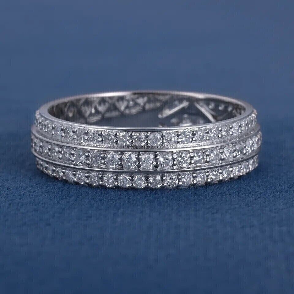 $ 2.115ct Oval & Round Diamond 925 Silver Eternity Engagement Ring Gift