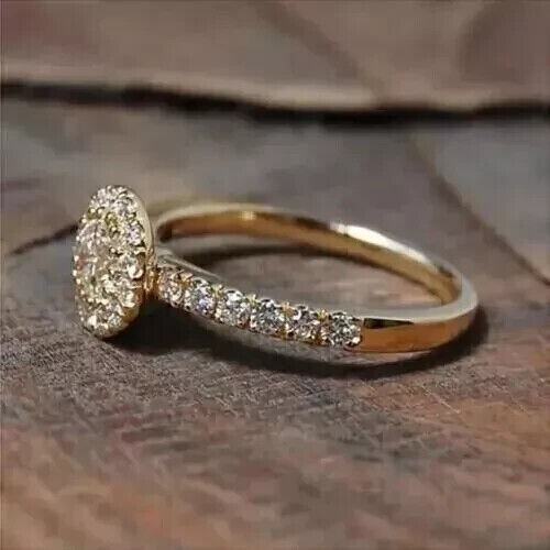 Round Cut Simulated Diamond Halo Wedding Ring in 14k Yellow Gold Plated