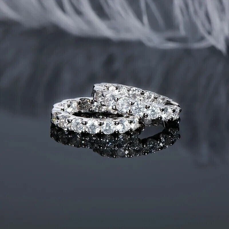 Style: Hoop, Huggie Customized: Yes Seller Warranty: Yes Country of Origin: United States Personalize: No Vintage: No Cut Grade: Excellent Main Stone Creation: Simulated MPN: NA Shape: Round Signed: No gtin13: Does Not Apply Main Stone: Simulated Diamond Type: Earrings Material: Stone, Metal Metal: Sterling Silver Handmade: Yes Antique: No Main Stone Treatment: Not Enhanced Era: Undated Color: White Theme: Beauty Occasion: Anniversary, Birthday, Christening, Christmas, Confirmation/Communion, Engagement, Graduation, Mother's Day, Valentine's Day, Wedding Country/Region of Manufacture: India Seller Notes: ““Freshly made on order with quality and buyer satisfaction. No old stocks.”” Metal Purity: 925 Ear Area: Lobe UPC: Does Not Apply Base Metal: White Gold Plated Brand: sp_jewels Secondary Stone: NA Number of Gemstones: 00 Wholesale: Yes Closure: Push Back Setting Style: Prong Main Stone Shape: Round Features: Engraved Main Stone Color: White