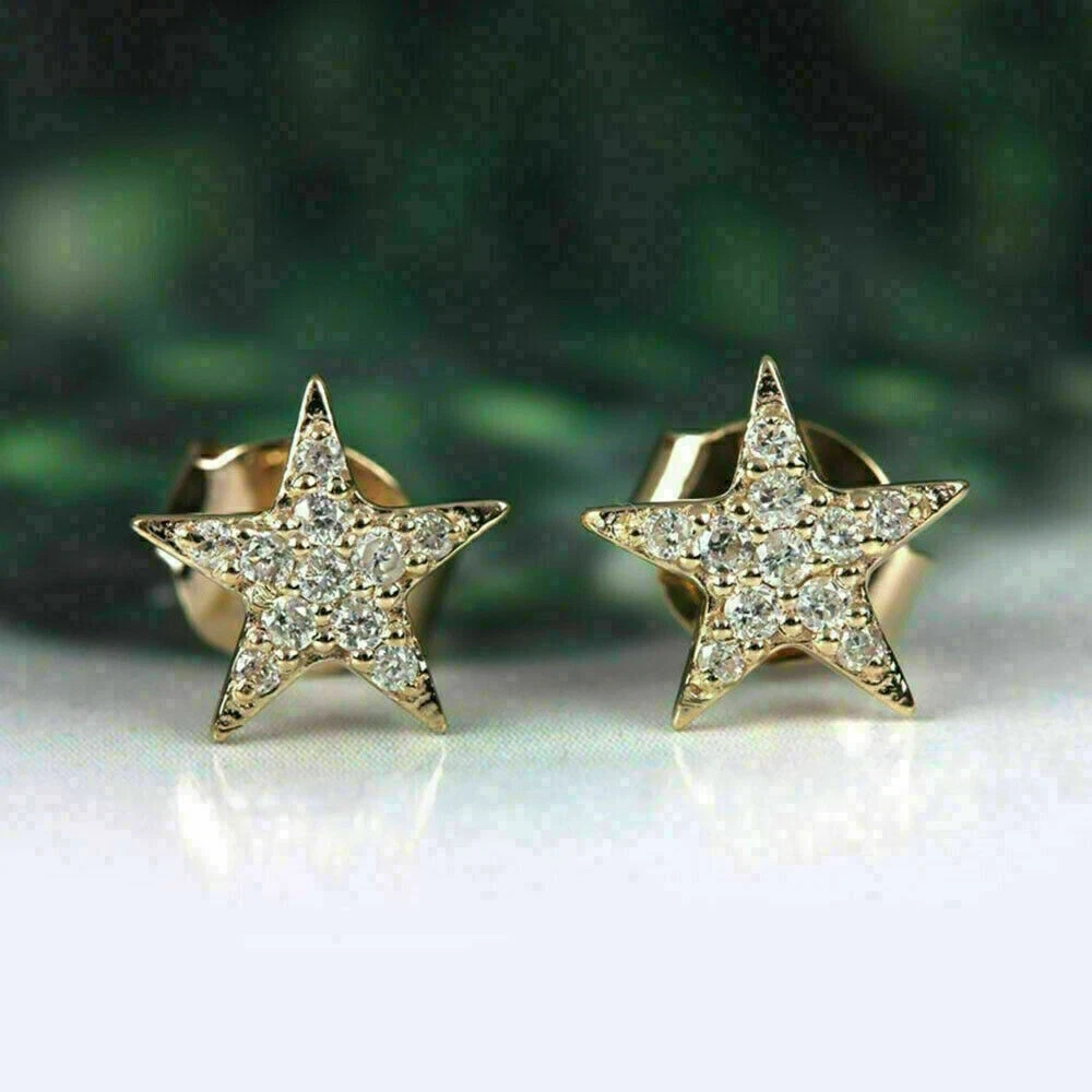 Round Cut Simulated Diamond Stunning Star Stud Earring In 14k Yellow Gold Plated