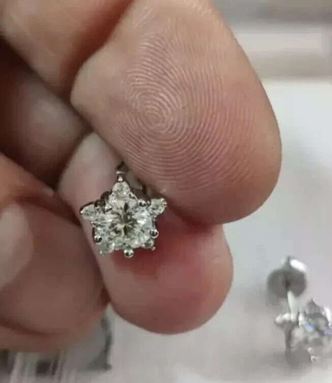 Ear Area: Lobe Main Stone Shape: Round Signed: No Shape: Star Vintage: No Handmade: Yes Customized: Yes UPC: Does Not Apply Color: White Base Metal: White Gold Plated Main Stone: Simulated Diamond Metal Purity: 925 Occasion: Anniversary, Birthday, Christening, Christmas, Confirmation/Communion, Engagement, Graduation, Mother's Day, Valentine's Day, Wedding Country/Region of Manufacture: India MPN: NA Era: Undated Setting Style: Prong Style: Stud Personalize: No Secondary Stone: NA Metal: Sterling Silver Cut Grade: Excellent Main Stone Treatment: Not Enhanced Antique: No Type: Earrings Main Stone Color: White Number of Gemstones: 00 Theme: Beauty Seller Notes: ““Freshly made on order with quality and buyer satisfaction. No old stocks.”” Main Stone Creation: Simulated Country of Origin: United States Wholesale: Yes gtin13: Does Not Apply Material: Stone, Metal Seller Warranty: Yes Features: Engraved Closure: Push Back Brand: sp_jewels