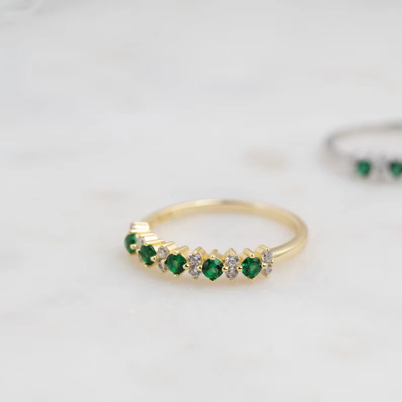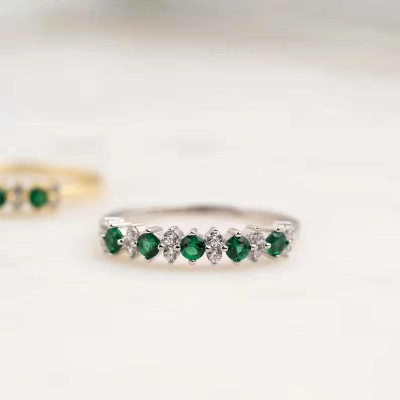 KJ_JEWELRY This Round Cut Simulated Emerald Eternity Band Ring features a 2.32 carat green main stone in a sterling silver setting. The ring is adorned with a row of simulated diamonds for added brilliance and charm. Personalization is available, and the ring is nickel-free and adjustable for comfort. Ideal for occasions like engagement, Mother's Day, Christmas, weddings, anniversaries, birthdays, and Valentine's Day, this ring offers a unique and stylish option for those who appreciate beauty and elegance in their jewelry collection. Payment Policy 1. We accept payment via PayPal only. 2. You can also use a credit card for payment by using PayPal as a guest. 3. Payment is required within 3 days after buying. Shipping Policy 1. We ship worldwide. 2. Handling time is 5 business days after receiving clear payment and ring size confirmation. ( Business days excludes Saturdays / Sundays and Public Holidays. 3. Delivery time will be 5-10 working days (which may extend during peak season time). 4. Kindly provide complete address and contact number for hassle free shipping. Expedited Shipping Expedited shipping with online tracking and delivery confirmation within 3-5 working days can be availed on request. Return Policy 1. We accept returns only if there is any manufacturing defect or in transit damage. 2. Refund amount is based on product's price you have purchased for. 3. Please remember to contact us before sending any item back. 4. For incomplete or wrong address we are not liable for any return. 5. If the buyer wants to return the item for his/her own personal reasons ( without any valid reason of item received in damage condition or unless it is defective ) the return shipping charges will be born by buyer. Buyer's Feedback 1. Your feedback is very important to us. 2. Do remember to give us 5 star rating if you are satisfied with our product and service. 3. If you have any queries related to the product or service you can expect a reply within 12-48 hours of inquiry. 4. Do contact us before leaving a negative or neutral feedback to get a 100% solution for the dissatisfaction caused to you. Contact Us Feel Free to contact us for any queries about the product through " Ask Seller a Question " Thank You Visit Again.