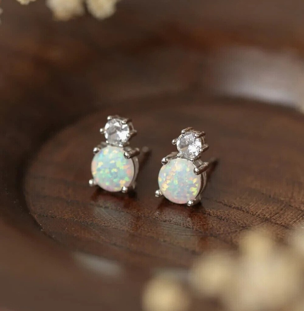 Vintage: No Style: Stud Main Stone Color: Multicolor Seller Warranty: Yes Main Stone Shape: Round Cut Grade: Excellent Shape: Round Main Stone: Simulated Fire Opal Main Stone Creation: Simulated Country/Region of Manufacture: India Color: White Brand: sp_jewels Material: Stone, Metal, Gemstone Ear Area: Lobe Personalize: No Theme: Beauty Main Stone Treatment: Not Enhanced Wholesale: Yes Type: Earrings Handmade: Yes Signed: No Metal: Sterling Silver MPN: NA Metal Purity: 925 Occasion: Anniversary, Birthday, Christening, Christmas, Confirmation/Communion, Engagement, Graduation, Mother's Day, Valentine's Day, Wedding Features: Engraved Antique: No Closure: Push Back UPC: Does Not Apply Base Metal: White Gold Plated Seller Notes: ““Freshly made on order with quality and buyer satisfaction. No old stocks.”” Country of Origin: United States Setting Style: Prong Number of Gemstones: 2 Secondary Stone: Simulated Diamond Era: Undated gtin13: Does Not Apply Customized: Yes
